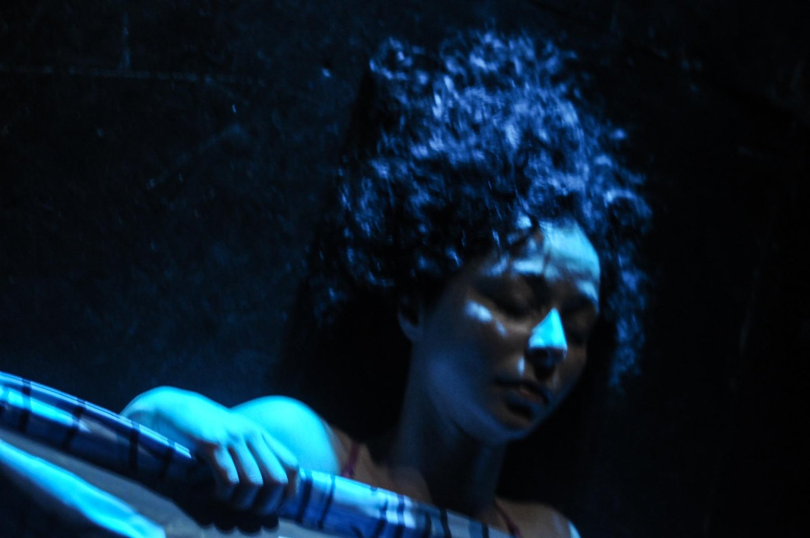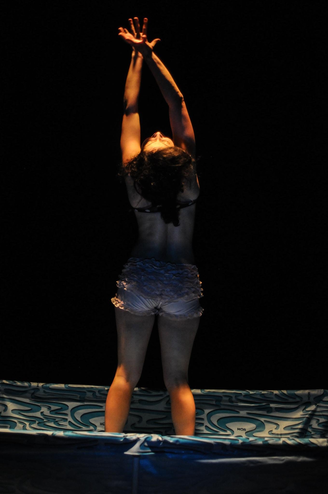 Essa breve introdução se faz necessária para abordar minha percepção ao fotografar a performance de “Pisc in À”, com a atriz Maria Cecília Mansur, no aconchegante espaço cedido pelo Armazém Cultural, no bairro de Pinheiros, na capital paulista. Durante todo o tempo – não o chronos, mas o kairós – da apresentação, esqueci de tudo que já havia lido e fotografado e me pus a olhar para aquele corpo se movendo no espaço, na tentativa de reaprender a olhar.