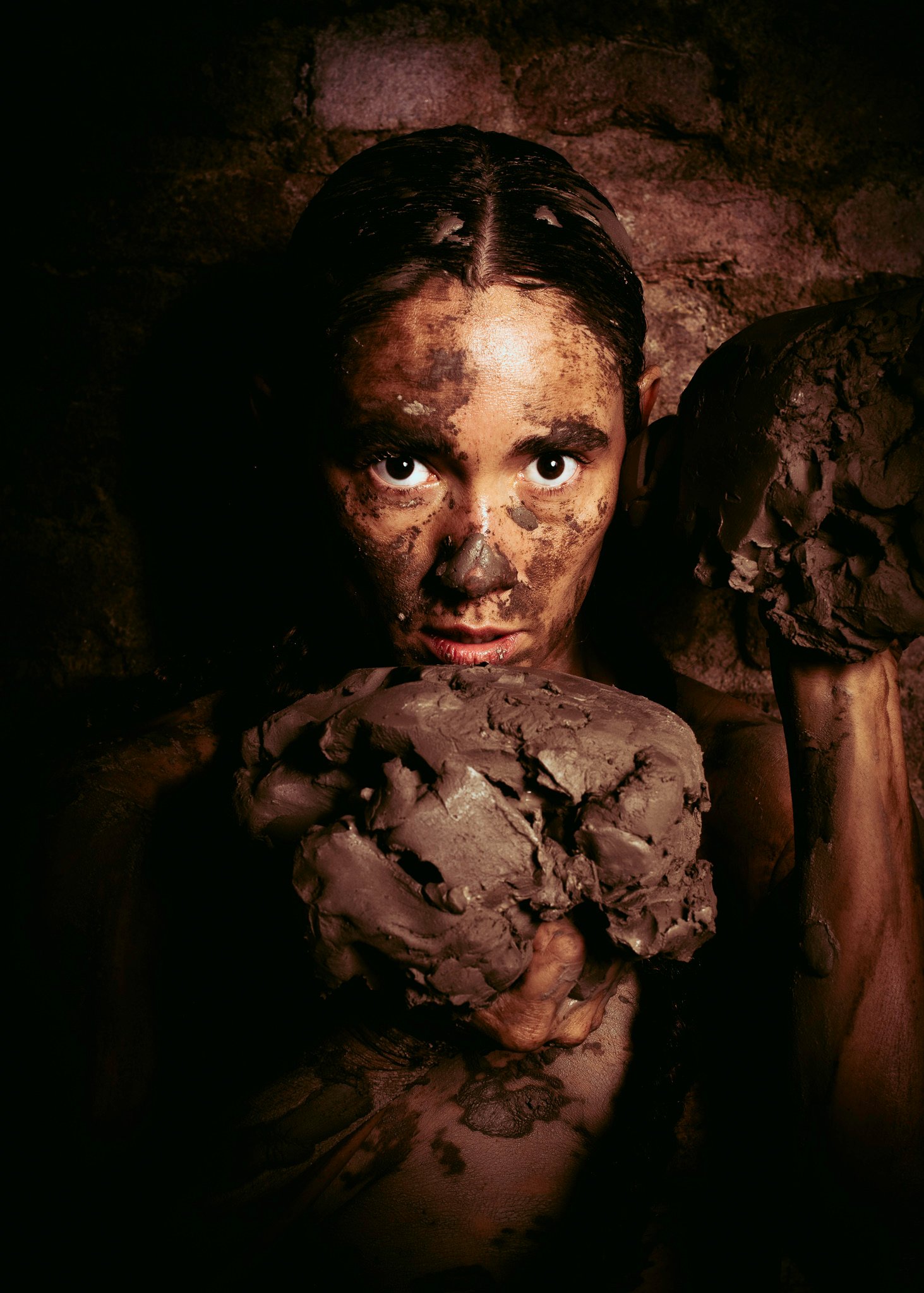 Bob Sousa – A argila aparece em cena como matéria simbólica e elemento dramatúrgico. Que caminhos você percorreu até encontrar no barro esse meio de diálogo com ancestralidade, corpo e transformação?