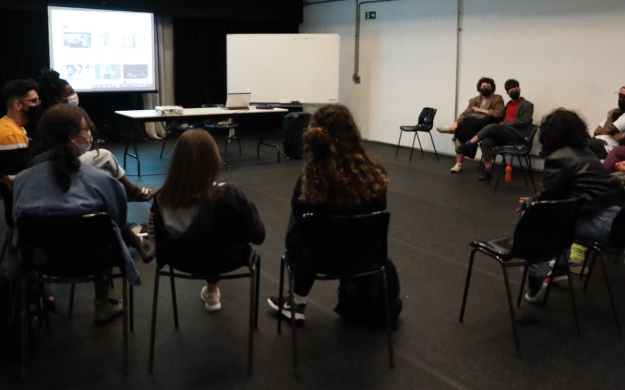 O segundo filme exibido, Paradoxo, trouxe uma São Paulo distópica que vive uma crise econômica após um golpe de estado financiado pela elite do país. O desemprego, a miséria da classe trabalhadora, a realidade cruel das ruas, saúde mental e valores éticos são alguns dos assuntos tratados na narrativa. Segundo João, a obra reflete acerca do mecanismo de controle sobre as pessoas, o qual é utilizado em prol da manutenção do modelo capitalista de produção. No evento compareceram também estudantes não bolsistas do Programa Oportunidade e um público externo, e ao final das sessões a conversa com Camila Araújo, bibliotecária da escola, e com João Rodrigo, foi muito produtiva e enriquecedora. Nesse contexto, o analista pontua a importância dessa troca: