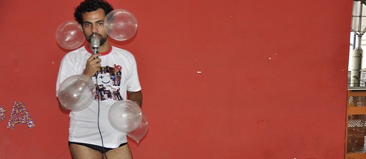 “Hoje tive a oportunidade de levar ao público uma pesquisa que parte do conceito ‘leituras de integrações públicas’, que gerei neste ambiente teatral provocador de intervenções no meio social. Assim, pude realizar uma performance de sunga, camiseta da campanha contra as DST’s, rodeado de camisinhas – uma sugerindo a gravidez indesejada e outras utilizadas como meia, luva, protetor de ouvido, microfone. Isso tudo dentro da estação do Brás, onde não se pode nem sentar no chão”, comenta Edélsio.