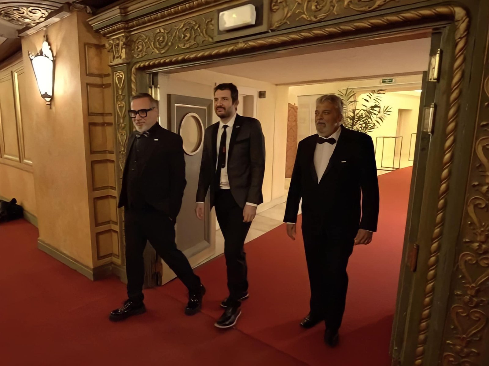 Ivam Cabral, Marcio Aquiles e representante da ESQR chegam ao jantar de gala, em Bruxelas Foto: Divulgação