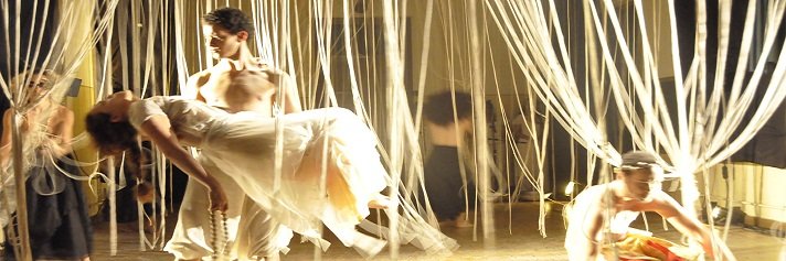 Cantos, som de tambor e flautas anunciavam o início da abertura do processo de trabalho do Grupo 3 e, no momento em que as portas do espaço cênico se abriram, os espectadores eram convidados a atravessar uma estrutura de incontáveis fios de barbante que compunha o cenário, para chegar até as cadeiras da plateia.