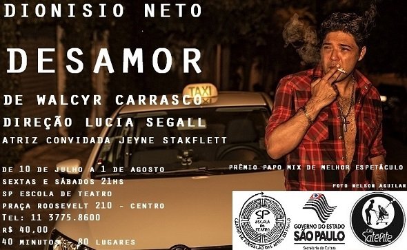 (Fotos: Carlos Oliveira) O ator Dionisio Neto apresenta, a partir de sexta-feira (10) a peça “Desamor”, na SP Escola de Teatro – Centro…