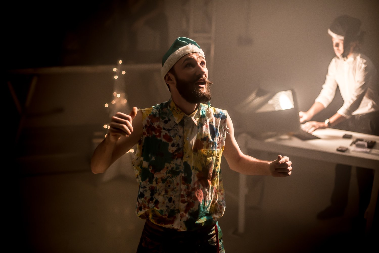 Everson Bertucci e Vinicius Guarilha em “Exagerei no Rímel”. (Foto: Renata Forato)   O que você faria se, ao chegar ao trabalho ou escola…