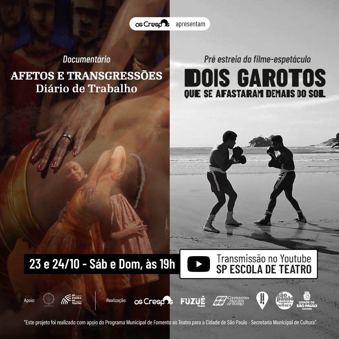 O Youtube da SP Escola de Teatro apresenta neste final de semana (sábado e domingo, às 19h), o média-metragem Afetos e Transgressões – Um diário de Trabalho, da Cia Os Crespos. O projeto apresenta o processo de criação do espetáculo teatral “De Mãos Dadas Com a Minha Irmã”, que dialoga com o público juvenil e adolescente e é indicado para toda família. A obra parte da mitologia Iorubá, reconstruindo o imaginário de irmandade, respeito e poder para buscar o fortalecimento do feminino no mundo. As exibições são gratuitas, neste sábado (23) e domingo (24).