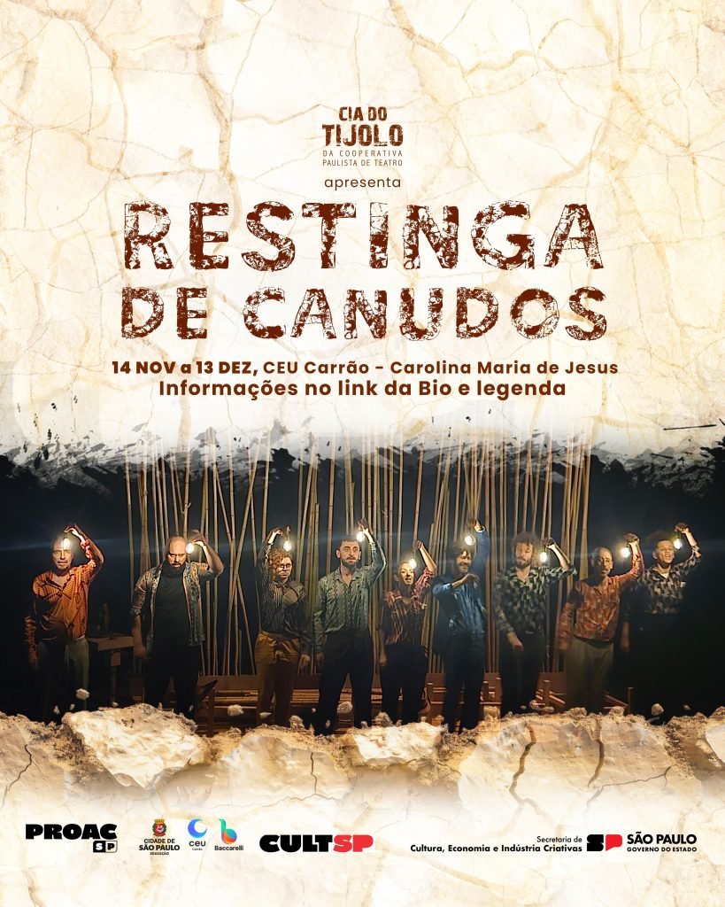 Até o dia 13 de dezembro de 2024, com entrada gratuita e tradução em LIBRAS, a Cia do Tijolo (@ciadotijolo) estreia seu novo espetáculo “Restinga de Canudos”, com apresentações no teatro do CEU Carrão, no Tatuapé, Zona Leste de São Paulo. A montagem promete emocionar e provocar reflexões sobre o Brasil e suas raízes profundas.