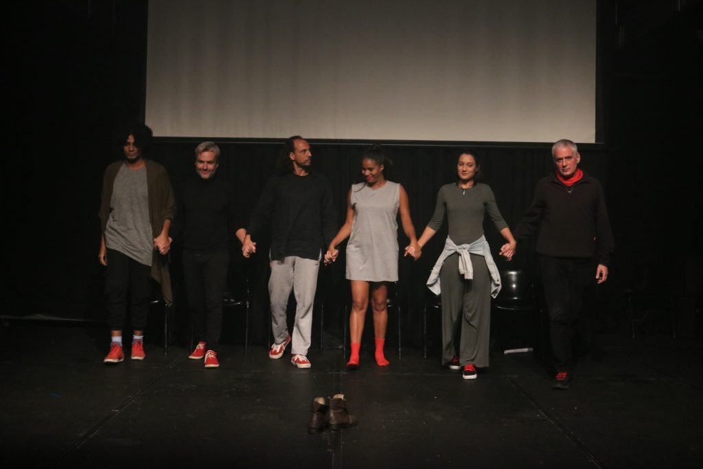 Na última sexta-feira, 20, estreou na unidade Roosevelt da SP Escola de Teatro o espetáculo Sapathos, da Cia Os Zzzlots. Em cena, o elenco apresentou ao público reflexões sobre temas diversos e atuais, como o preconceito, a violência, a transfobia e o racismo estrutural, numa proposta realista que discute situações factuais. Foi um sucesso!