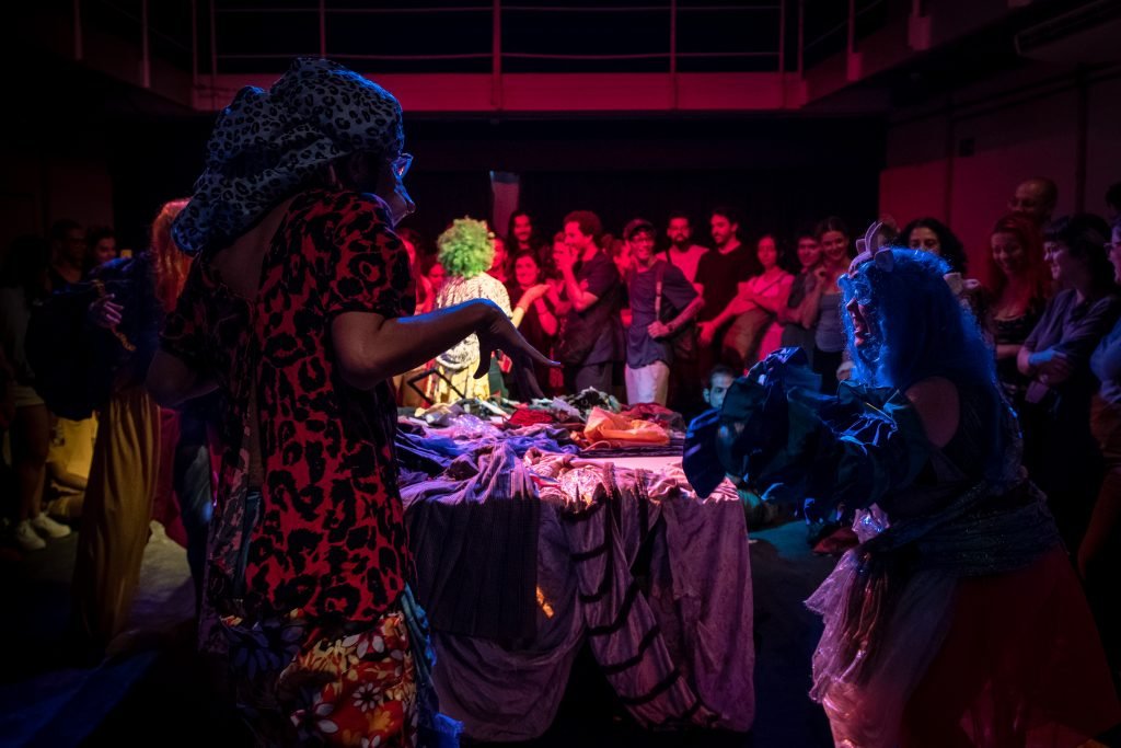 Para as apresentações, primeiramente, cada estudante de Direção elaborou seu próprio projeto, organizando previamente todos os elementos pensados para compor seu processo de direção. Num segundo momento, os estudantes de Atuação, Humor e Direção se encontraram para uma partilha dessas primeiras ideias, com a finalidade de formar os grupos para execução das propostas.
