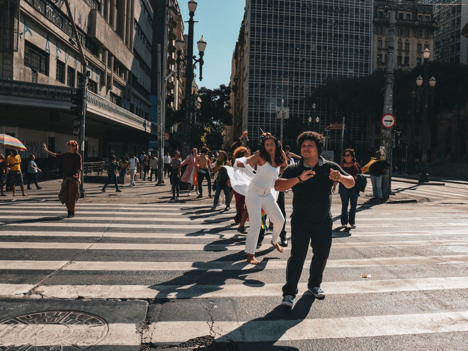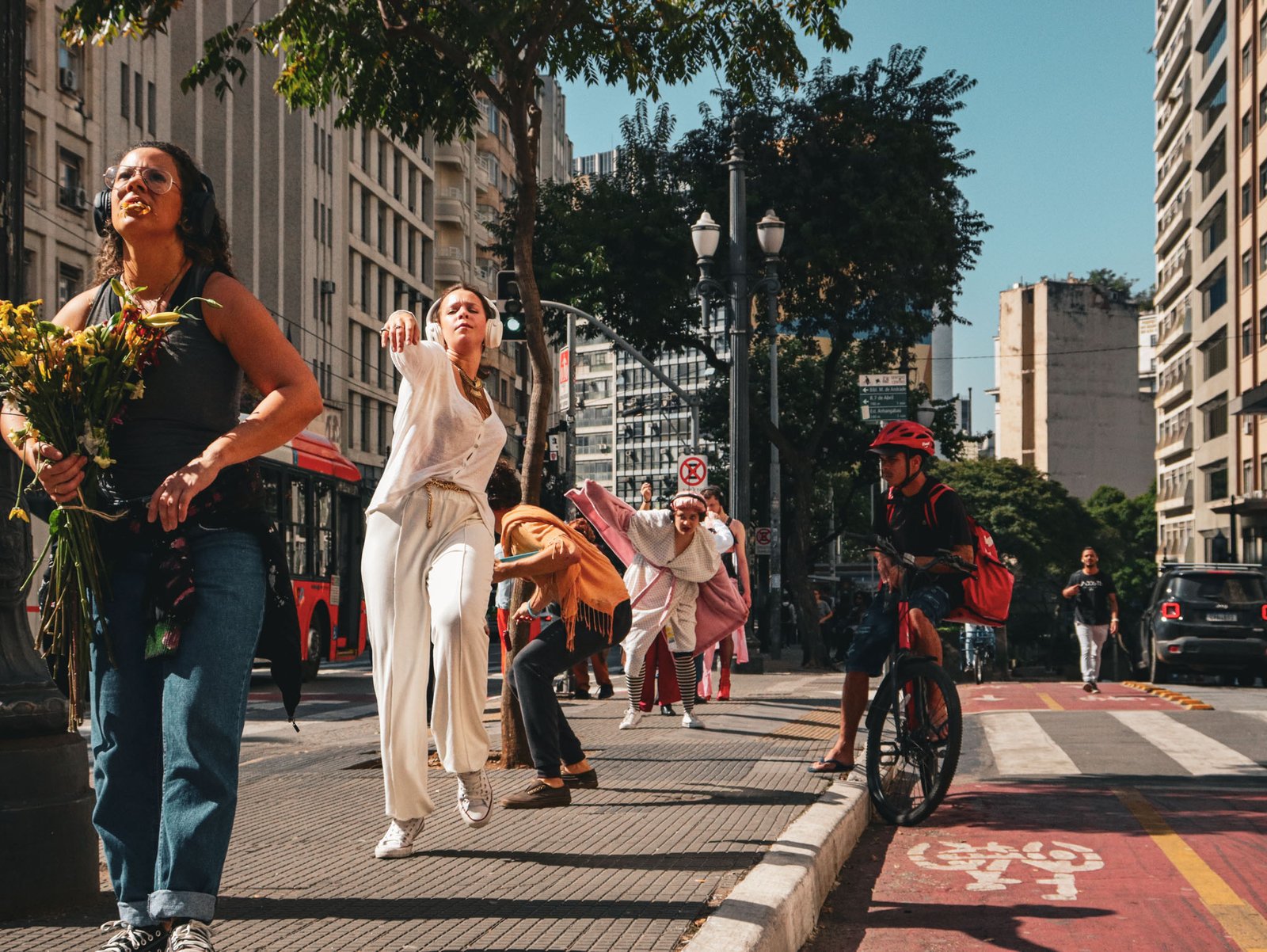 Estudantes da SP Escola de Teatro realizam performance itinerante com destino ao Theatro Municipal de São Paulo | Foto: Ana de Castro/ADAAP