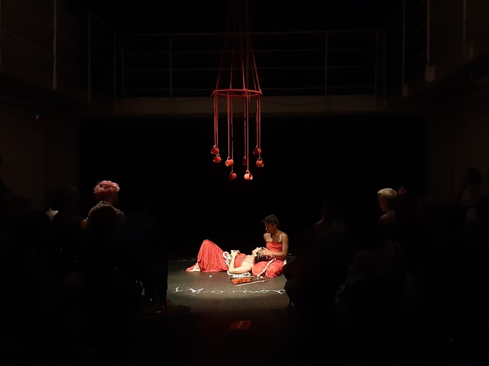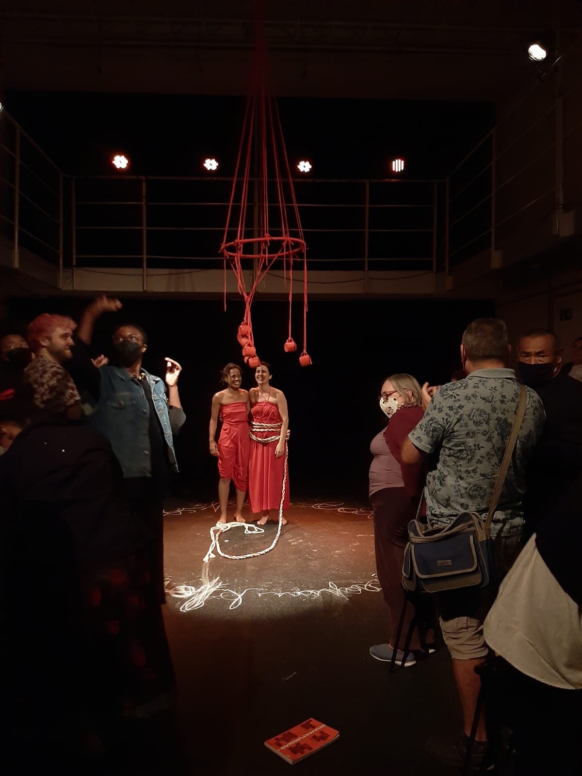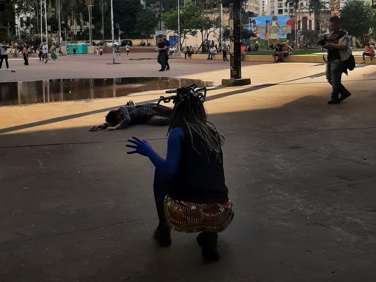Ao final da tarde, a Praça Roosevelt foi o palco da performance Transmutação: da pedra à carne, criada a partir do encontro das personagens-entidades Camille Claudel, performada por Rosana Ribeiro, e Neomedusa, entidade encarnada por Aline Fatima, numa deriva urbana de ressignificação trágica. Juntas, por meio de seus corpos, ressignificam suas tragédias e potencializam uma transmutação.