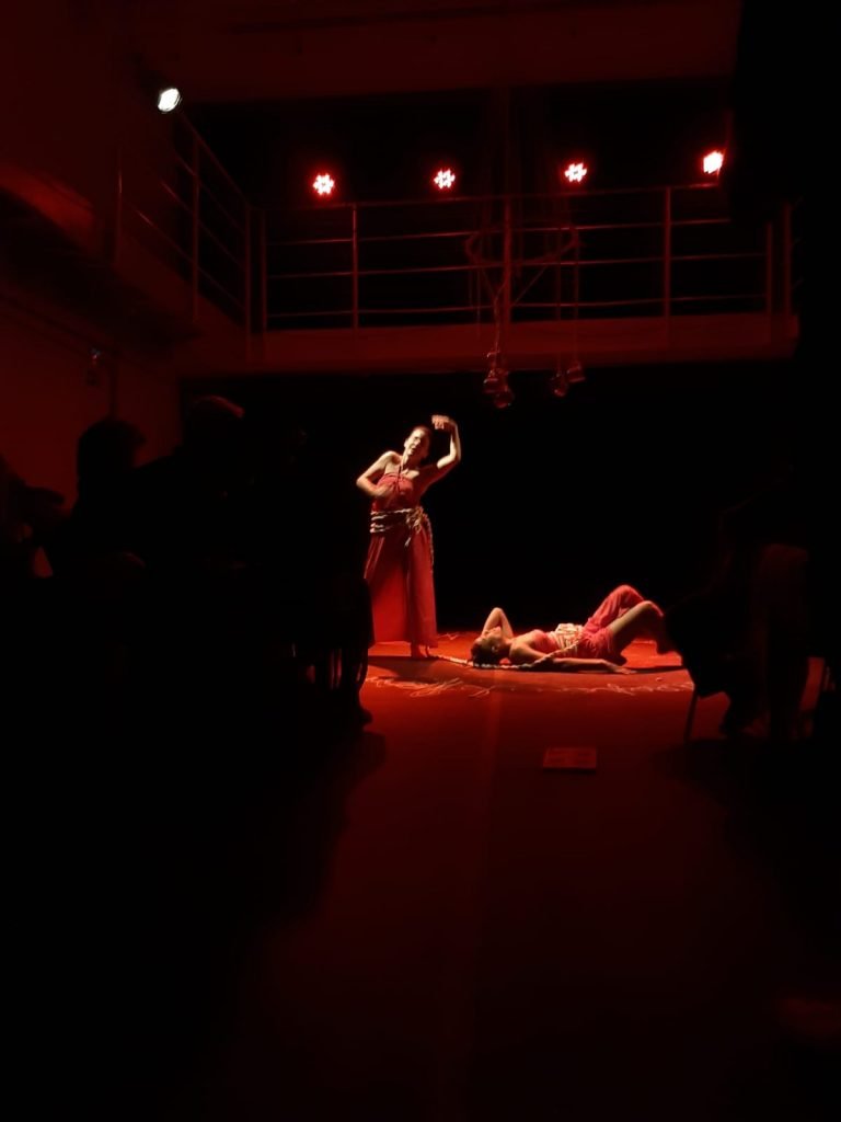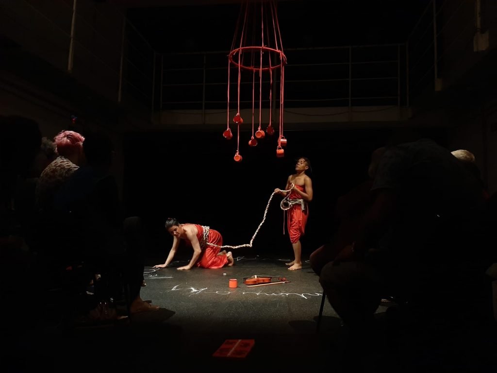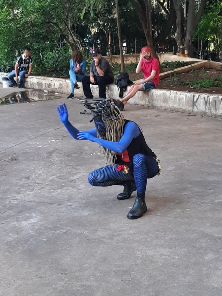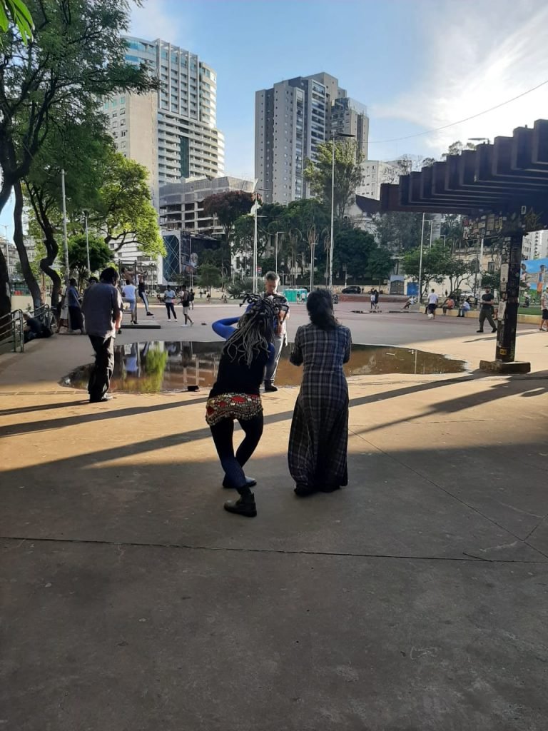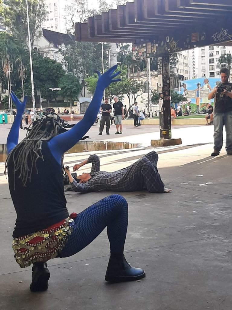 Ao final da tarde, a Praça Roosevelt foi o palco da performance Transmutação: da pedra à carne, criada a partir do encontro das personagens-entidades Camille Claudel, performada por Rosana Ribeiro, e Neomedusa, entidade encarnada por Aline Fatima, numa deriva urbana de ressignificação trágica. Juntas, por meio de seus corpos, ressignificam suas tragédias e potencializam uma transmutação.