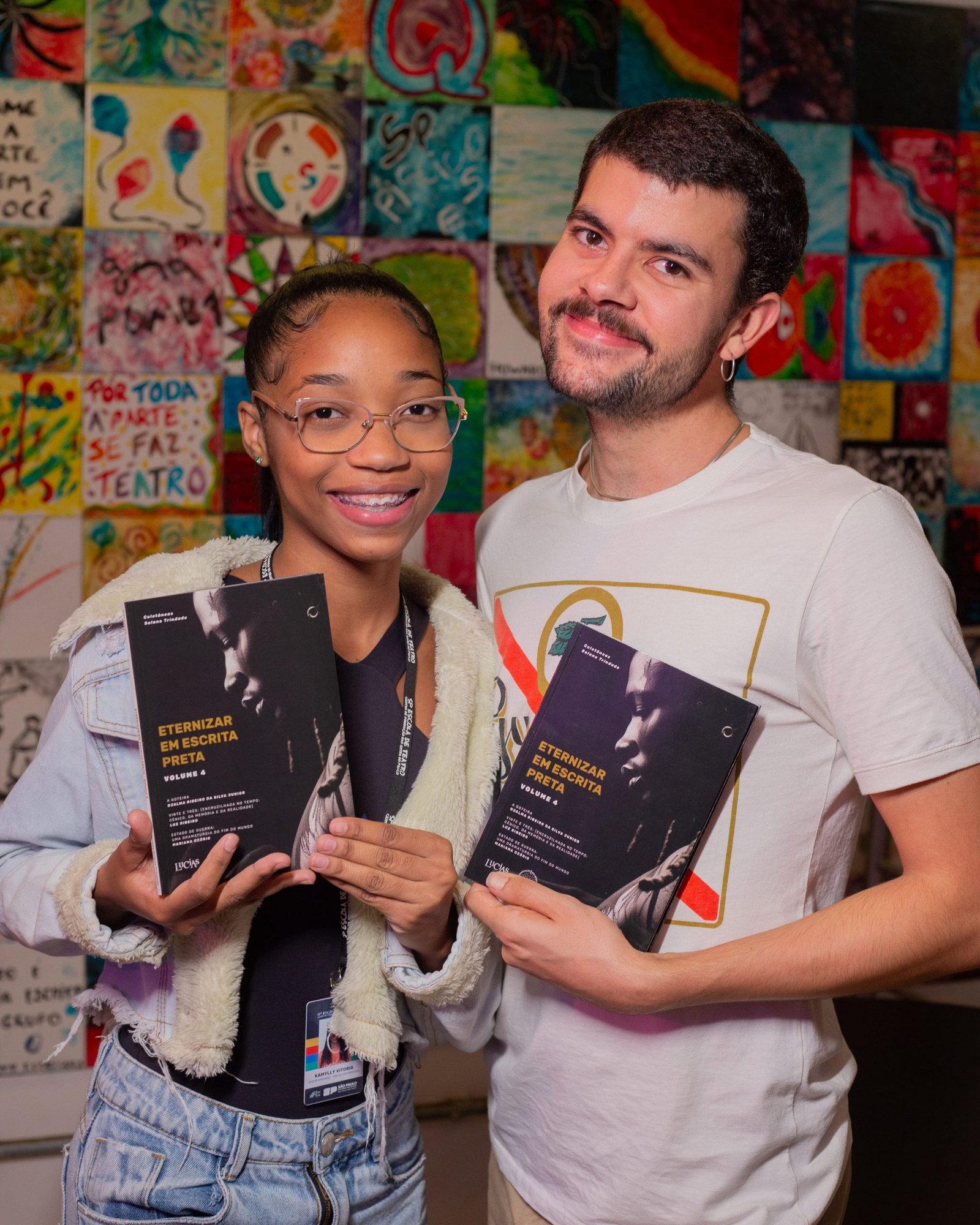 Djalma Júnior e Mariana Ozório: vencedores do prêmio Solano Trindade 4, com livro lançado pelo Selo Lucias na SP Escola de Teatro. | Foto: Rafa Marques