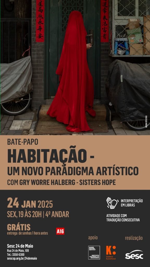 Uma oportunidade única de aprofundar sua visão artística na palestra “Habitação – um novo paradigma artístico”. Gry Worre Hallberg, Diretora Artística do Sisters Hope, abordará como a arte pode transformar a nossa relação com o mundo (com tradução simultânea).