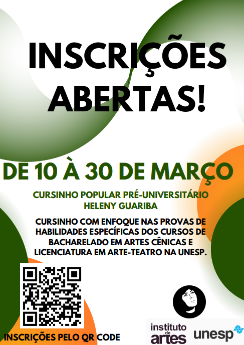 Cursinho Popular Heleny Guariba abre inscrições para quem deseja ingressar nos cursos de teatro do Instituto de Artes da UNESP