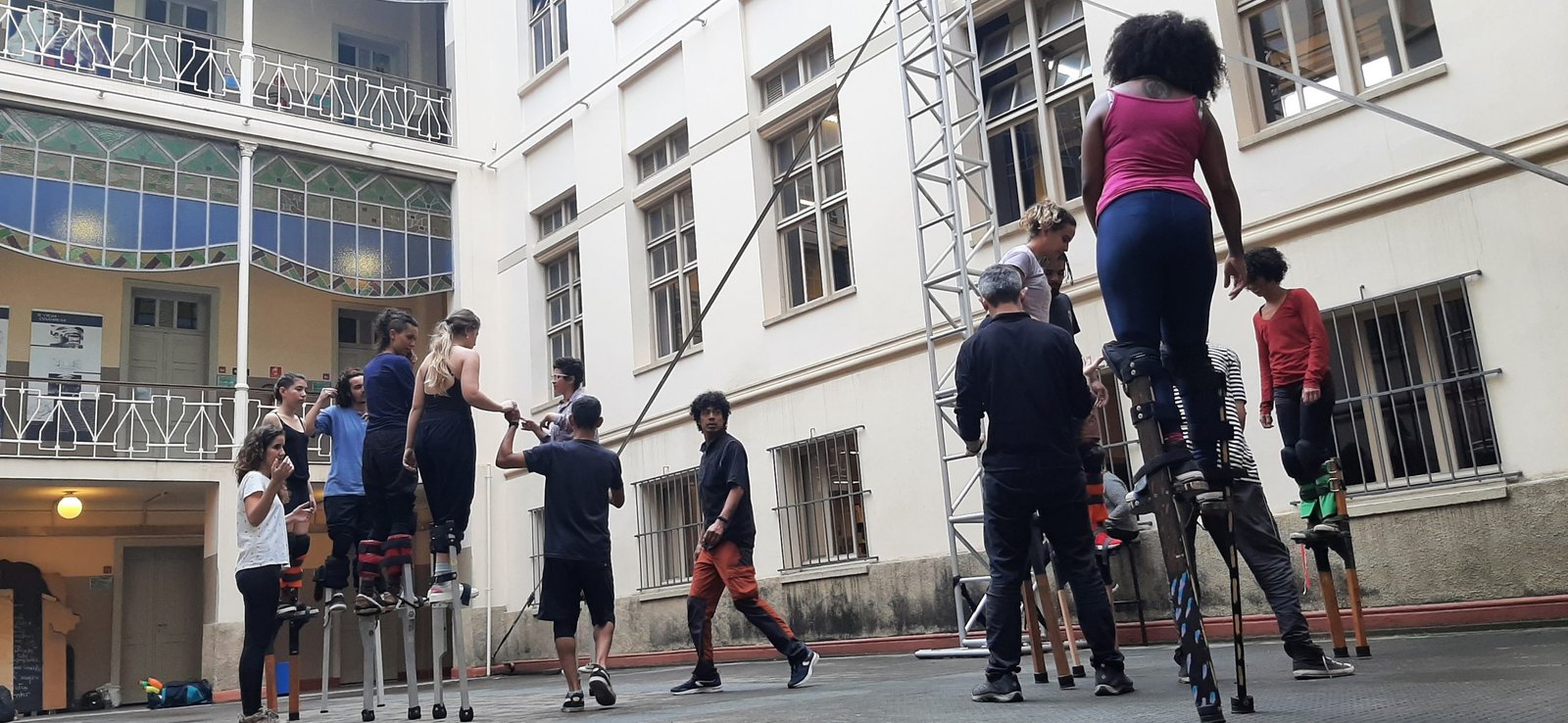 Pernas de Saracura – estudo sobre perna de pau, ministrado por Guilherme Awazu, difunde os saberes com as pernas de pau para aumentar e potencializar a técnica e criações nessa modalidade circense. Diante da pluralidade de movimentos e o “reaprender a andar”, os estudantes têm a chance de revisitar e re-entender o significado do erro, gerando novas possibilidades psico sócio afetivas em um olhar psicomotor.