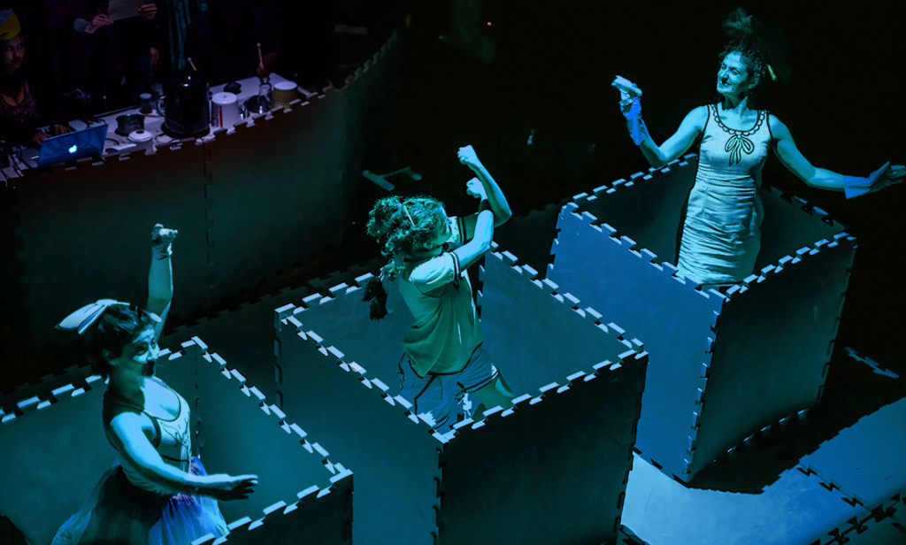 Estudantes dos cursos regulares durante experimento cênico, na SP Escola de Teatro. Foto: Divulgação/SP Escola de Teatro