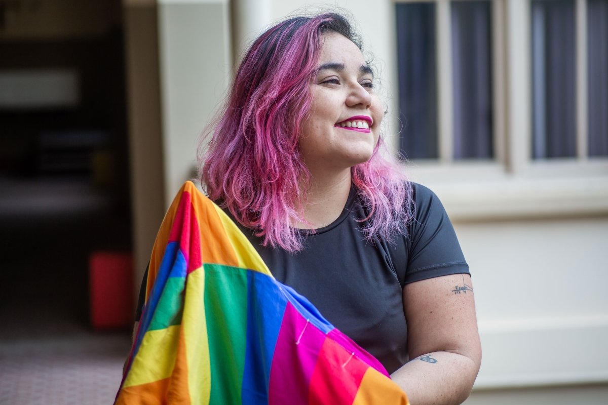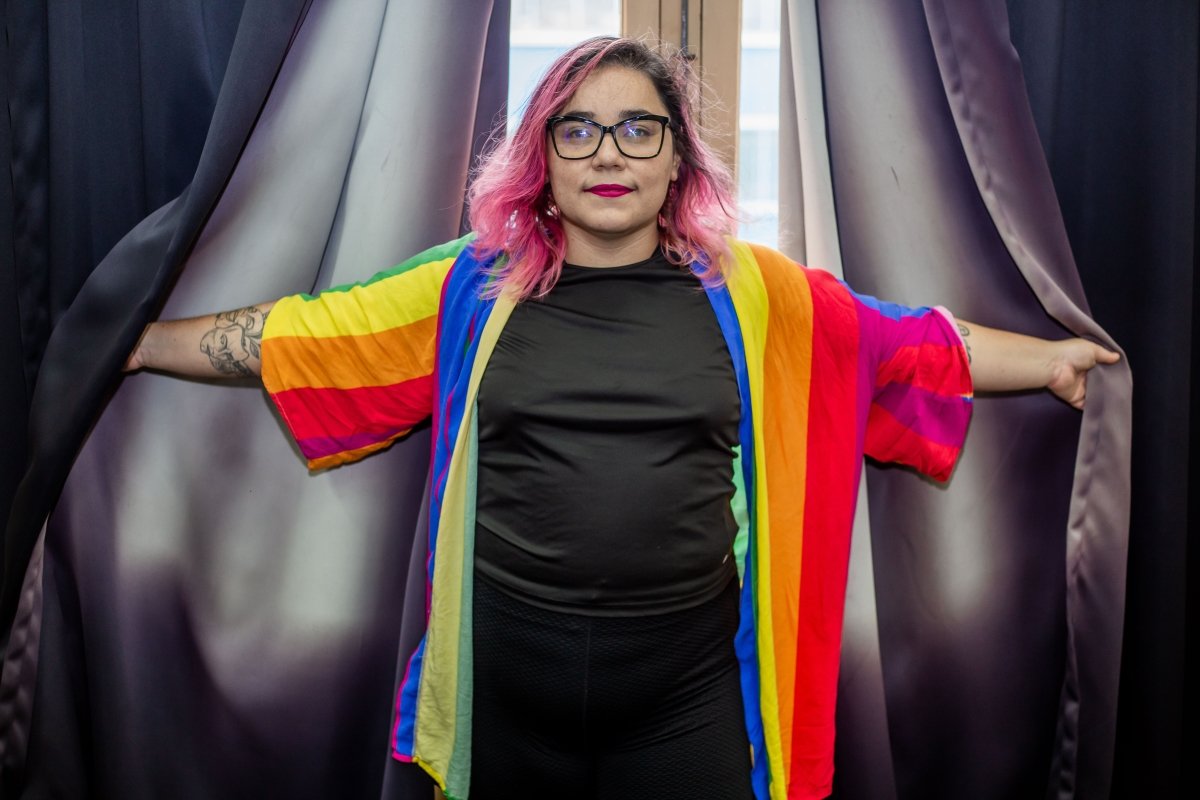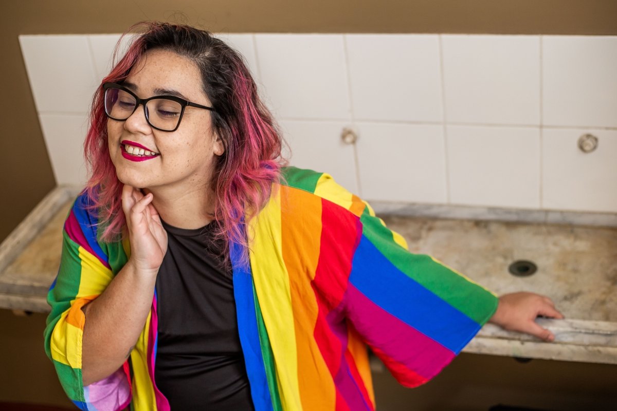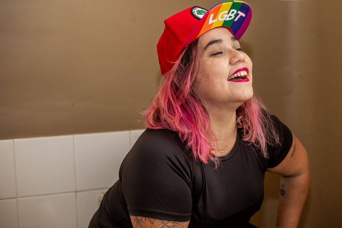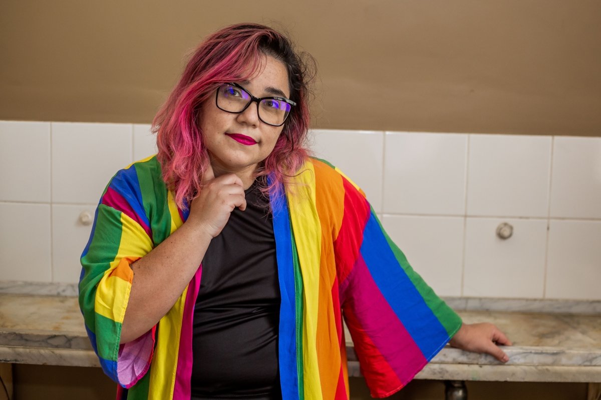A fotógrafa e jornalista Annelize Tozetto, 34, é “Peixes com ascendente em Áries, Lua em Sagitário e Vênus em Capricórnio”. Nascida em Ponta Grossa, no interior do Paraná, mora em São Paulo há dois anos após temporada em Curitiba. Com 13 anos de carreira artística, na qual se destacam as belas imagens que contam parte da cultura e da sociedade brasileira neste ainda jovem século 21, ela se define como uma pessoa bissexual e sempre luta pela visibilidade e respeito às pessoas da letra B na sigla LGBTQIA+. “É um dia de luta pela nossa existência. De reafirmar quem somos no mundo, de resistir”, diz a fã de samba e música popular brasileira. Para a fotojornalista, participar do ensaio do Orgulho na SP Escola de Teatro foi um desafio. “Nunca estou frente à câmera. Sou a pessoa por trás das lentes. Então, adorei essa troca, e o Edson Lopes Jr. faz um trabalho maravilhoso. Para além disso, estar, ainda que por um breve momento, junto com outras pessoas LGBTs é sempre maravilhoso. Você aprende, dá risada, melhora como ser humano”, avalia ela, que faz pós-graduação em Fotografia como Suporte para a Imaginação e atua como assessora parlamentar na mandata da deputada estadual Isa Penna (PSOL). Leva como momento da vida o dia em que fotografou Fernanda Montenegro no Festival de Curitiba, onde atua há mais de uma década no time de fotógrafos oficiais. “Pro futuro?…. Bem, futuro é sempre uma caixinha de surpresas, mas tenho pensado em exposição e livro”, confidencia. E comemora o fato de a comunidade LGBTQIA+ ocupar mais os espaços. “Mas ainda falta muita coisa como políticas públicas que façam diferença na vida das pessoas, que garantam emprego, casa, comida, saúde. Somos o país que mais mata LGBTs no mundo. É urgente demais”, lembra.