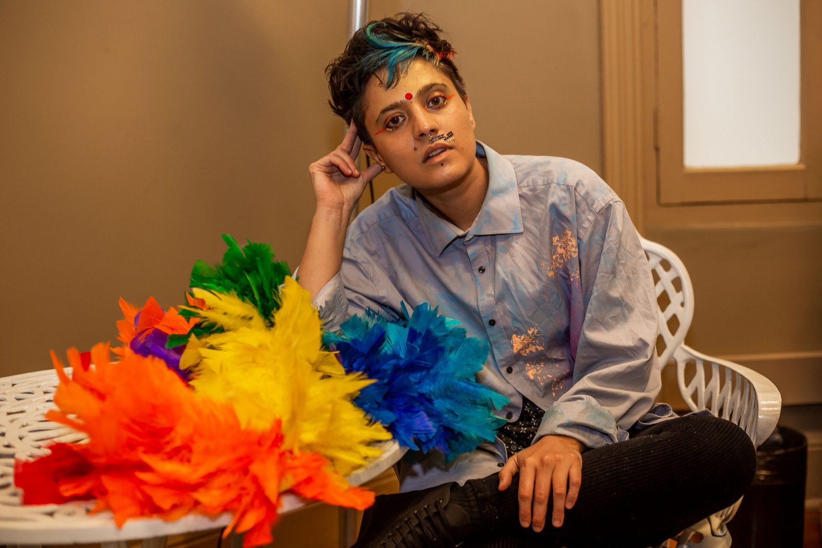 Artista não-binaerie natural de São Paulo e do signo de Aquario, Florydo Fogo, 35, já tem a arte como ofício há 12 anos. À frente da Núclea de Pesquiza Tranzborde, considera o 28 de junho, Dia Internacional do Orgulho LGBTQIA+, uma data “para firmar o rito e celebrar as existências: as nossas e de nossas transcestrais”. Em sua visão, participar do ensaio especial do Orgulho na SP Escola de Teatro foi o “encontro com a pluraridade de corpas e experiências”, que “alegra o coração, esquenta a alma e nos aproxima”. E lembra: “Ainda há uma lista enorme de urgências, como garantia de direitos básicos, preparo de profissionai de saúde de modo a não serem violentos com as existências trans, inserção no mercado e trabalho e na educação e políticas públicas que aproximem toda a população das pautas, não como se fossemos alienígenas, mas como dignes de existência”. Para ouvir, vai desde tradicional, passando por batidão e eletrônico, além de músicas imersivas. Já no audiovisual, o que faz sua cabeça é “cinema não-europeu que traz temáticas transviadas e de gayzagen”. Um momento especial na carreira? “Quando fui selecionado para a mostra Diversa 2017 no Museu da Diversidade Sexual. Foi a primeira vez que um espaço artístico legitimou minha identidade de gênero. Foi um momento crucial de autopercepção e de valorização”.
