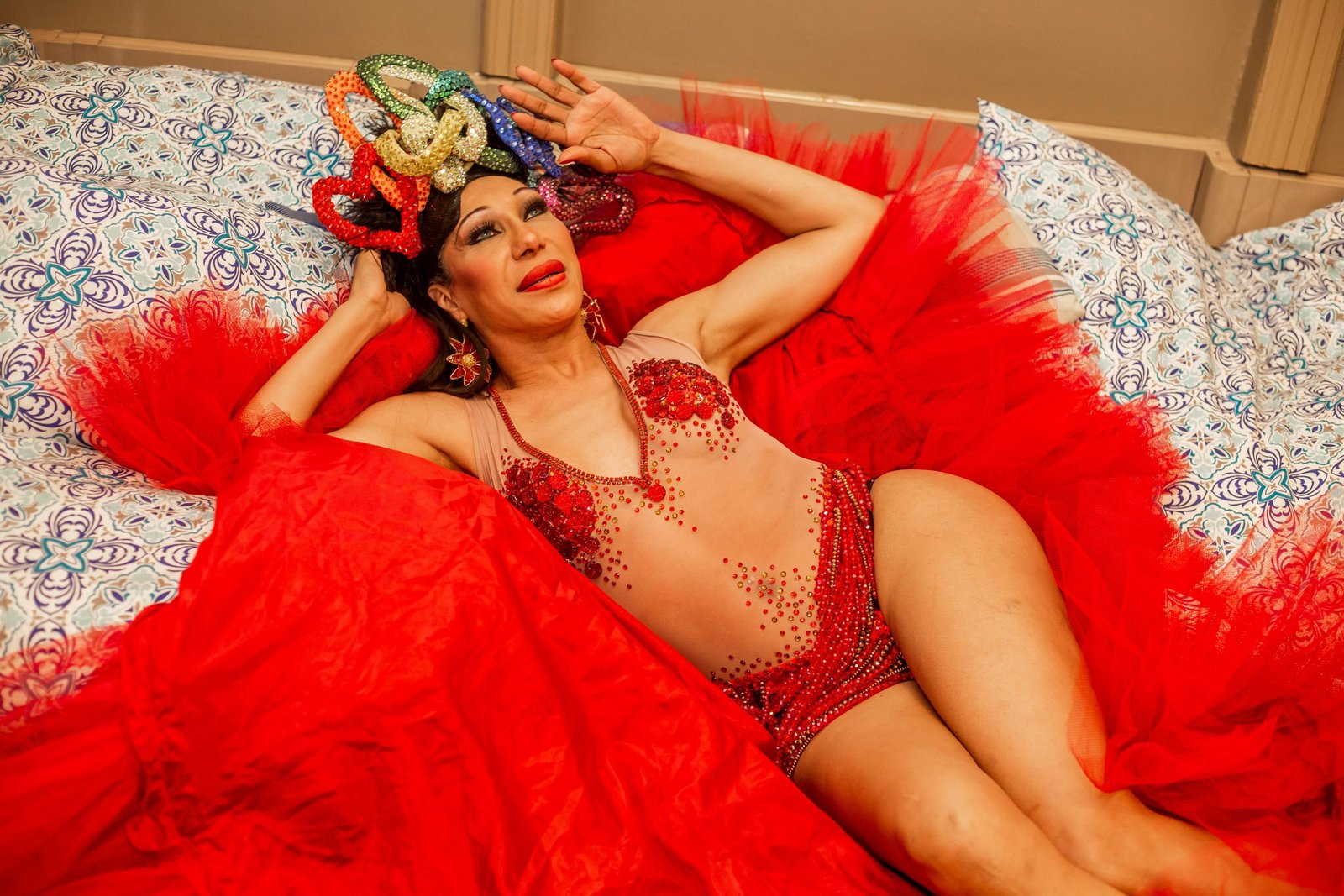 Do signo de Gêmeos, a paulistana da Bela Vista Divina Nubia, 57, é um verdadeiro ícone no transformismo no Brasil. Já mostrou seu talento incontestável nas casas noturnas mais lendárias da metrópole, como Nostromundo, além de ter brilhado por diversas vezes no Show de Calouros do SBT, na época um avanço de visibilidade para a comunidade LGBTQIA+, então chamada ainda de GLS. Com 41 anos de trajetória artística que merece respeito, ela lembra que o 28 de junho foi quando “através do amor pela perda da atriz Judy Garland, os gays enfrentaram a polícia, e assim passamos a comemorar o dia do Orgulho Gay”. Para ela, o ensaio na SP Escola de Teatro foi momento de “encontrar pessoas queridas e amadas e também pessoas novas, como novas ideias e posicionamentos, que é sempre agregador”. Nubia ainda celebra a estreia da série Manhãs de Setembro na Amazon Prime Video, na qual dá vida a Verônica, amiga da protagonista Cassandra, interpretada por Liniker. “No futuro, tenho muita vontade de fazer o que Deus tiver reservado para mim”, avisa a fã de “música francesa, latina, árabe e americana”. E recorda com carinho o fato de ter feito a apresentação de Divinas Divas no Theatro Municipal de São Paulo no dia 29 de janeiro de 2020: “Foi o melhor que me aconteceu neste ano de tanta tristeza”. Ao enumerar avanços para a comunidade, como o nome social para pessoas trans, recorda que ainda há o que melhorar: “A falta de memória dessa geração nova que hoje se casa, anda de mãos dadas e trocam carinho nas ruas”. E reforça o motivo. “Fomos nós e as pioneiras que, mesmo na ditadura, não desistiram de ser quem eram, mesmo correndo muitos riscos”, recorda. “Deixamos um legado”.
