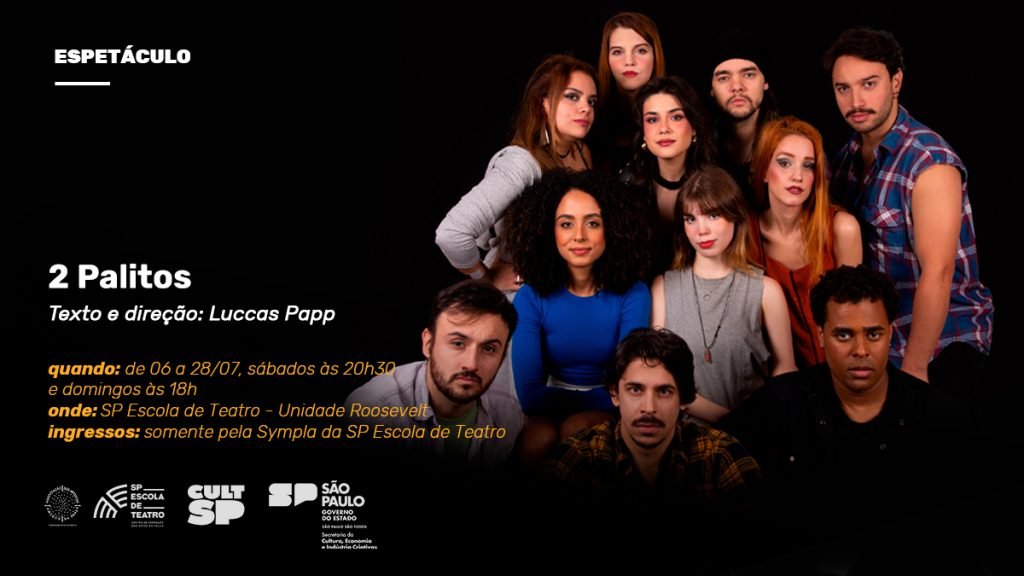 Entre 6 e 28 de julho, a SP Escola de Teatro recebe a residência artística do espetáculo “2 Palitos”, com texto e direção de Lucas Papp.