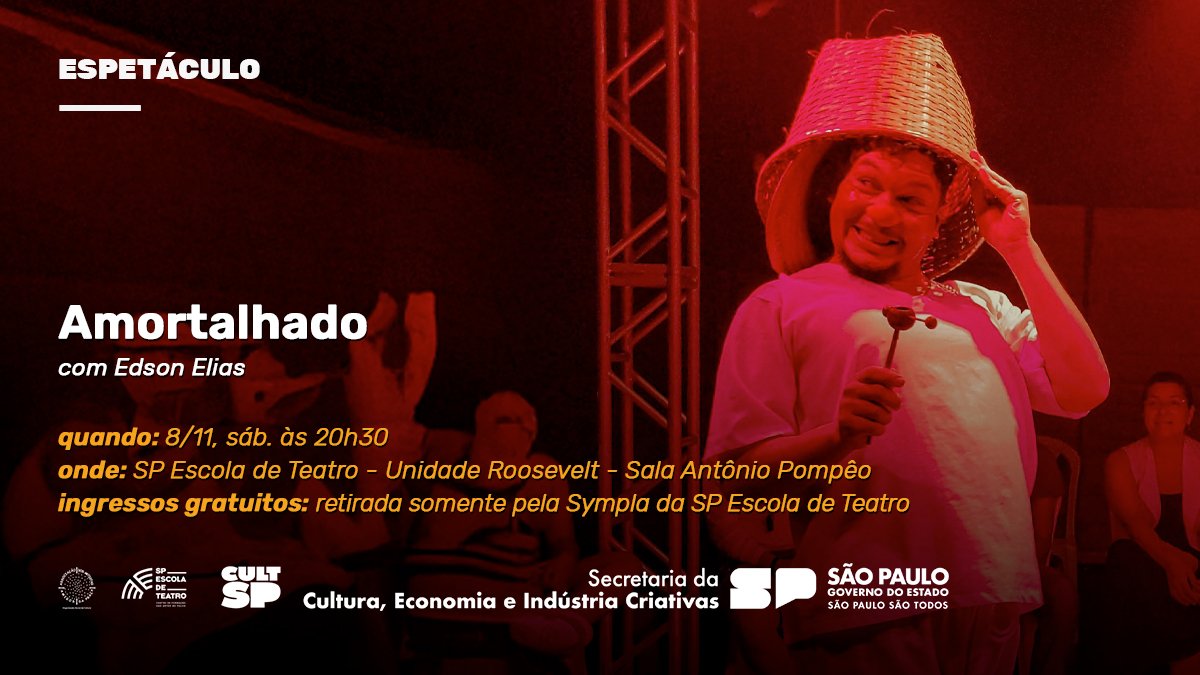 Local: SP Escola de Teatro – Unidade Roosevelt (Praça Franklin Roosevelt, 210, Consolação)
