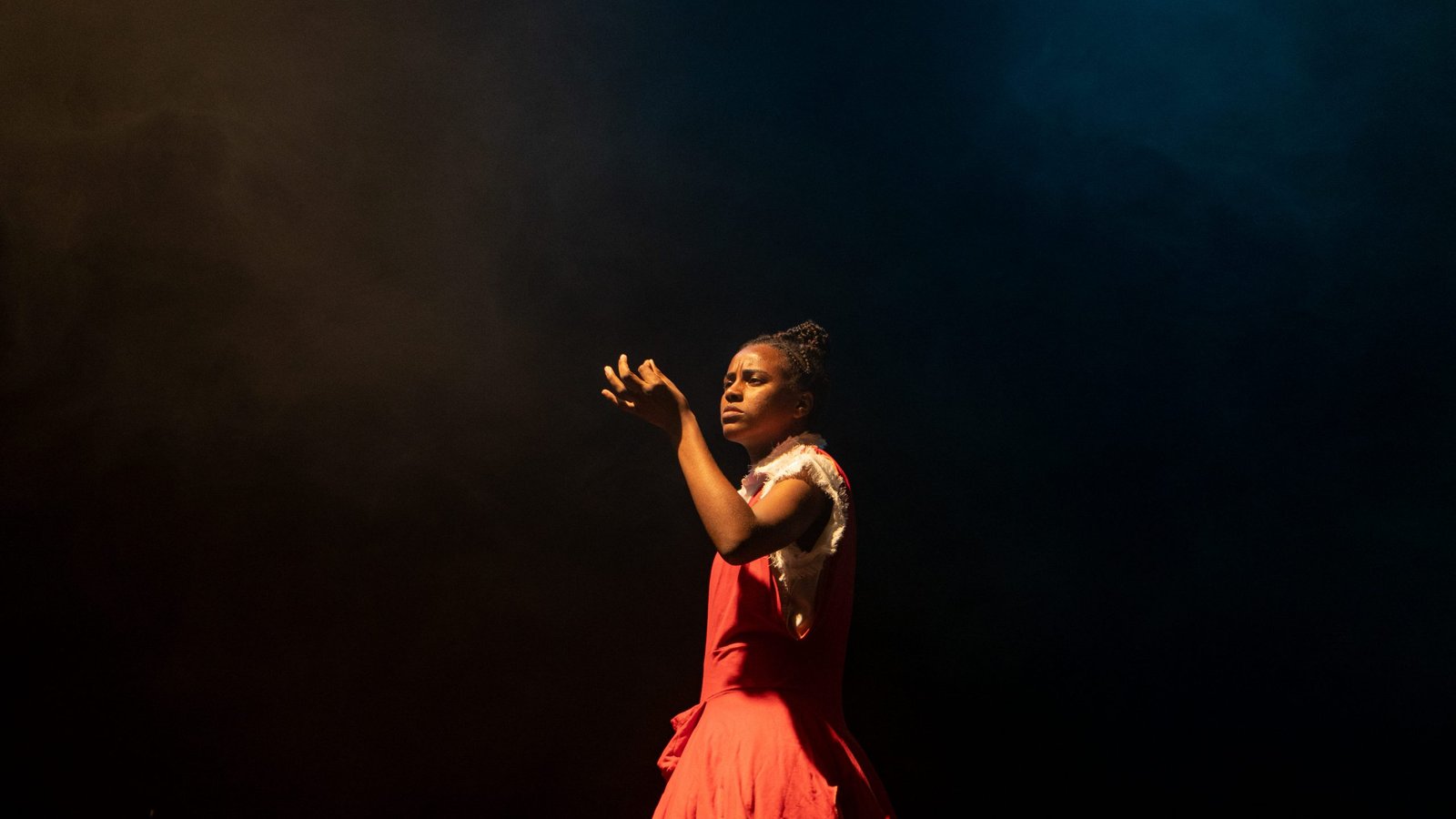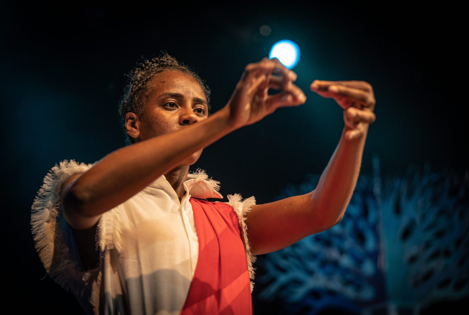 Aline Oliveira em cena na peça Eu, Atlântida. Foto: Divulgação