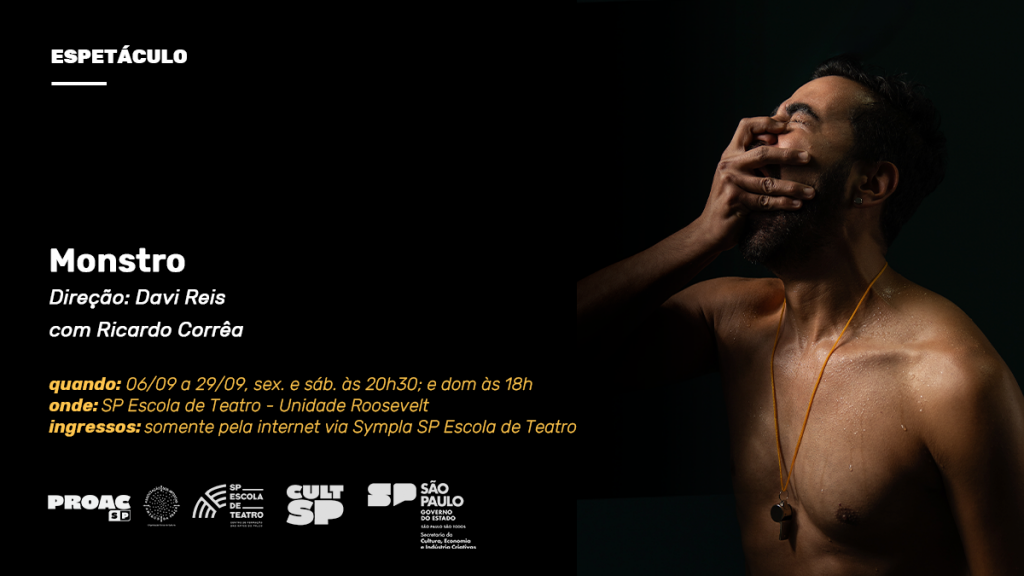 Entra em cartaz na SP Escola de Teatro a partir de 6 de setembro o espetáculo “Monstro”. A residência artística recebe o público até 29 de setembro na unidade Roosevelt.