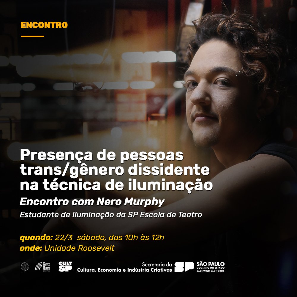 Promovido pelo estudante de Iluminação da SP Escola de Teatro Nero Murphy e voltado para os estudantes dos oito cursos regulares da Escola, o evento na unidade Roosevelt será um momento de debater novas perspectivas do trabalho dos profissionais de iluminação das artes do palco no século 21.