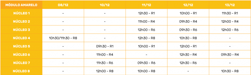 >> Confira os programas com sinopse e núcleo de criação dos módulos vermelho e amarelo.