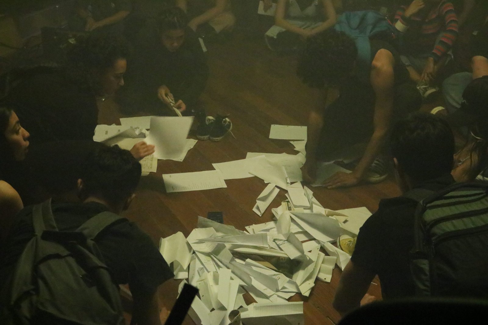 Na última semana, foi a vez dos estudantes do módulo Vermelho do curso técnico em teatro da SP Escola de Teatro apresentarem os primeiros experimentos cênicos do semestre! Eles se reuniram em núcleos – formados por pelo menos 1 integrante de cada linha de estudo da instituição- e produziram exposições poéticas a partir das principais temáticas do material de estudo do semestre, transformando teoria em prática.