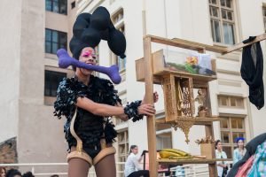 Toda trabalhada no falocentrismo discreto da família tradicional brasileira, MBL (Movimento das Bixa Loukíssima) é uma trupe performática que decidiu jogar “a verdadeira história da lacração” no ventilador. O trabalho, que tem como base de pesquisa os textos de Paul Preciado, é uma fricção entre o conservadorismo heterocentrado e delirante frente a personas que trazem corpos que transitam entre não humano, o surrealismo e a “transviadagem”. Com ironia, aborda a violência instaurada pela norma vigente no contexto brasileiro sobre xs corpes todes.
