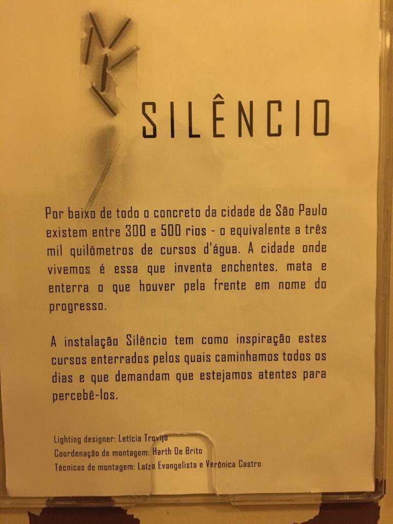 “Só podemos utilizar equipamentos da sede do Brás para construir o nosso projeto e isso nos instigou a criar com esses equipamentos mais rudimentares. Além disso, na construção da nossa instalação fomos levados a entender a relação do corpo na cena com a luz. Compreendemos como estar no espaço sem atrapalhar o caráter primário da luz”.