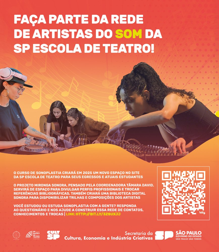 O curso de Sonoplastia criará em 2025 um novo espaço no site da SP Escola de Teatro – Centro de Formação das Artes do Palco para seus egressos e atuais estudantes.