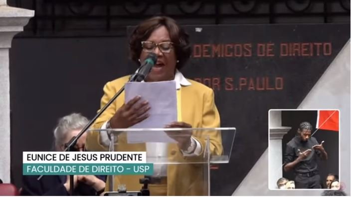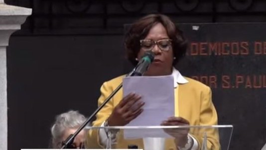 Eunice Prudente no ato pela democracia no Largo São Francisco. Foto: Reprodução Youtube