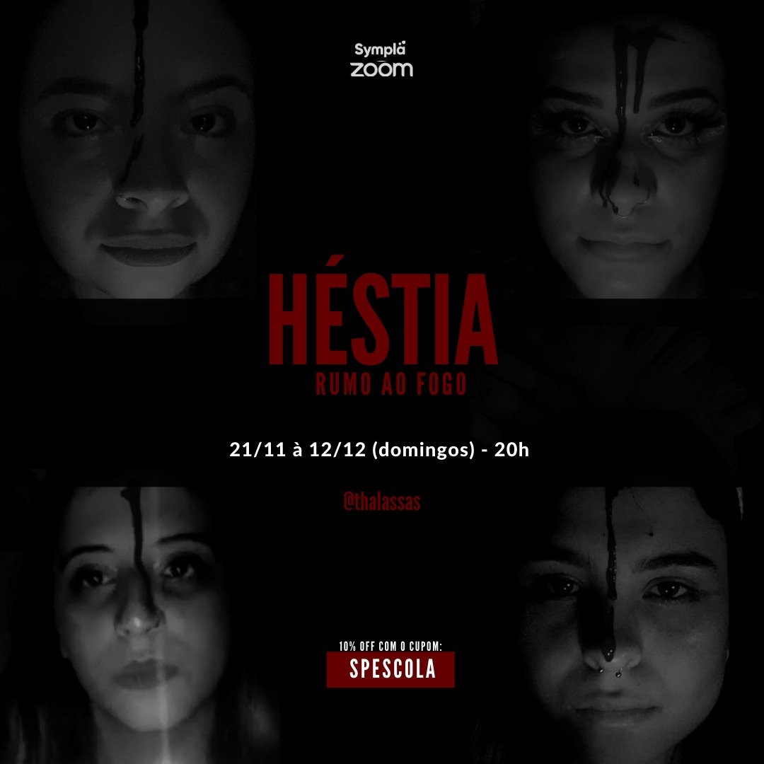 As artistas egressas da SP Escola de teatro, Heloísa Nogueira e Letícia Rodrigues, assinam a direção e a dramaturgia de ‘Héstia: Rumo ao Fogo’. A peça é online e acontecerá aos domingos a partir de 21 de novembro até 12 de dezembro, sempre às 20h. Nela é retratada a libertação de quatro jovens mulheres que enfrentam as contradições da relação com seus próprios corpos e a objetificação desses. A transmissão ocorre pela plataforma digital do Sympla e via Zoom, os ingressos podem ser adquiridos aqui, vale ressaltar que os alunos da instituição ganham cupom com um desconto exclusivo!