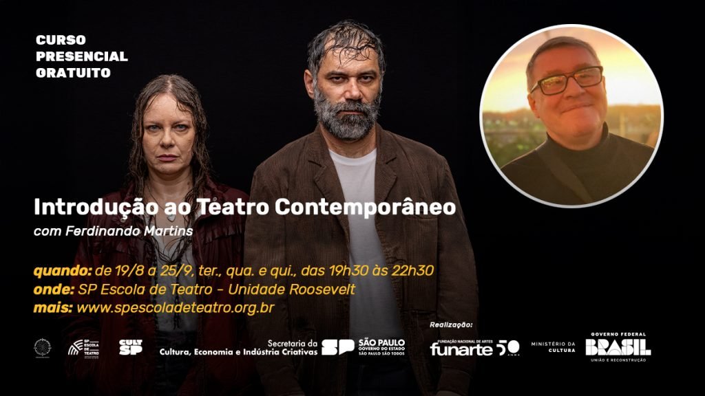 Estão abertas até 14 de agosto as inscrições para o curso de extensão gratuito “Introdução ao Teatro Contemporâneo”, a ser ministrado por Ferdinando Martins, professor Doutor do Departamento de Comunicações e Artes da Universidade de São Paulo (CCA/ECA/USP).