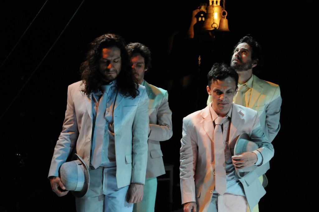 A encenação, apresentada de forma majoritariamente narrativa, exigiu do potente elenco composto por Antonio Salvador, Eduardo Osório, Marcos de Andrade, Ricardo Gelli, Jean Pierre Kaletrianos e Rafael Steinhauser a tarefa de fazer emergir aos olhos e, principalmente, aos ouvidos do espectador a natureza existencialista dos temas abordados pelo autor e a riqueza de detalhes narrativos característicos em sua obra. Aliado às grandes atuações, a generosa direção, o cenário de André Cortez, os figurinos de Anne Cerutti e a iluminação de Fábio Retti ajudaram a compor parte da complexidade desse universo.