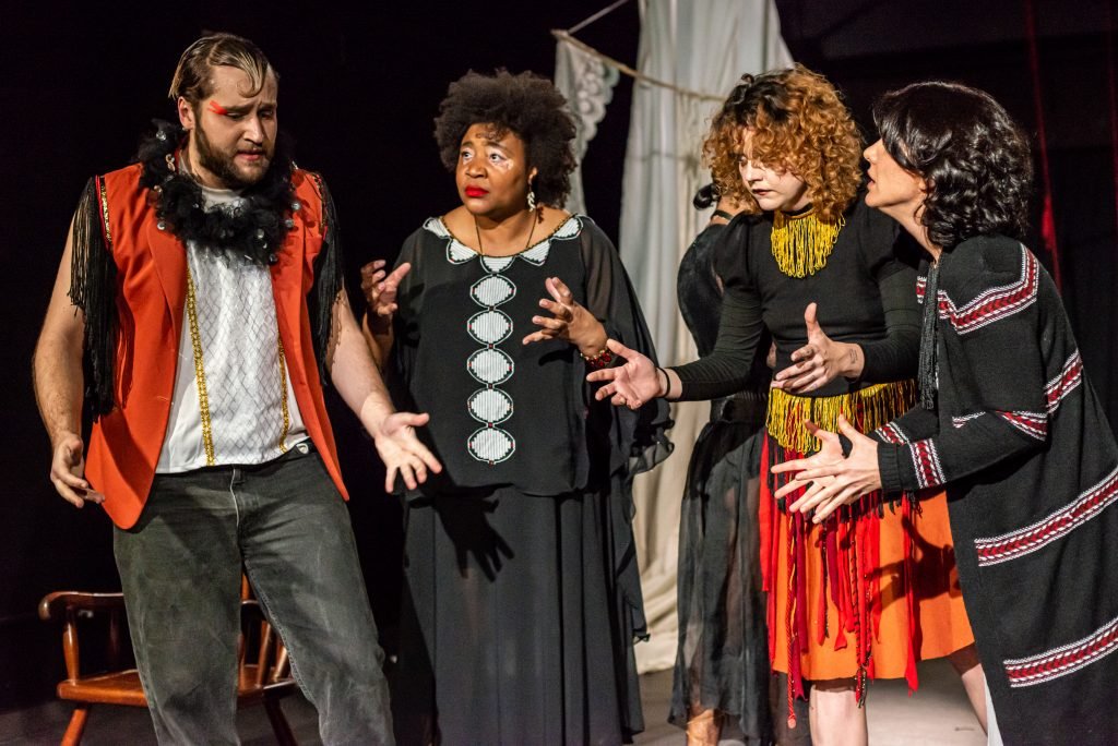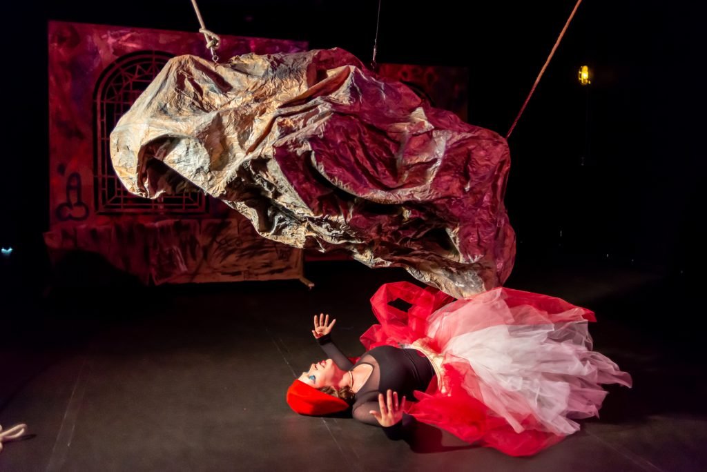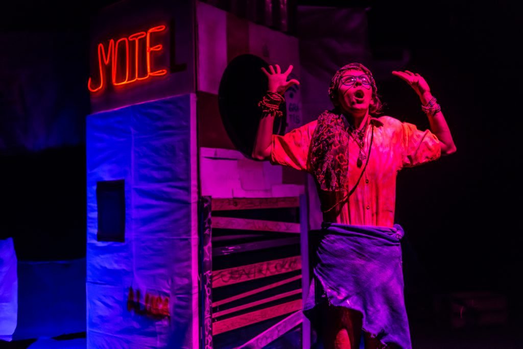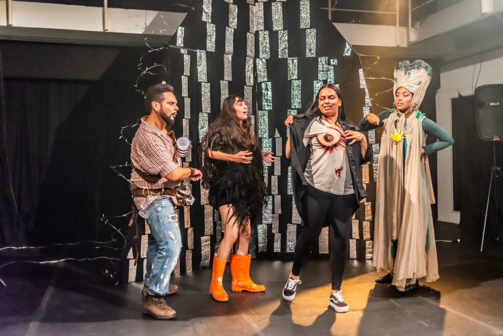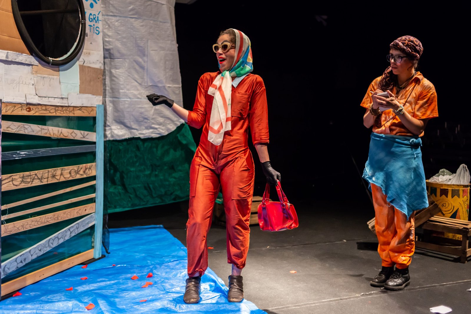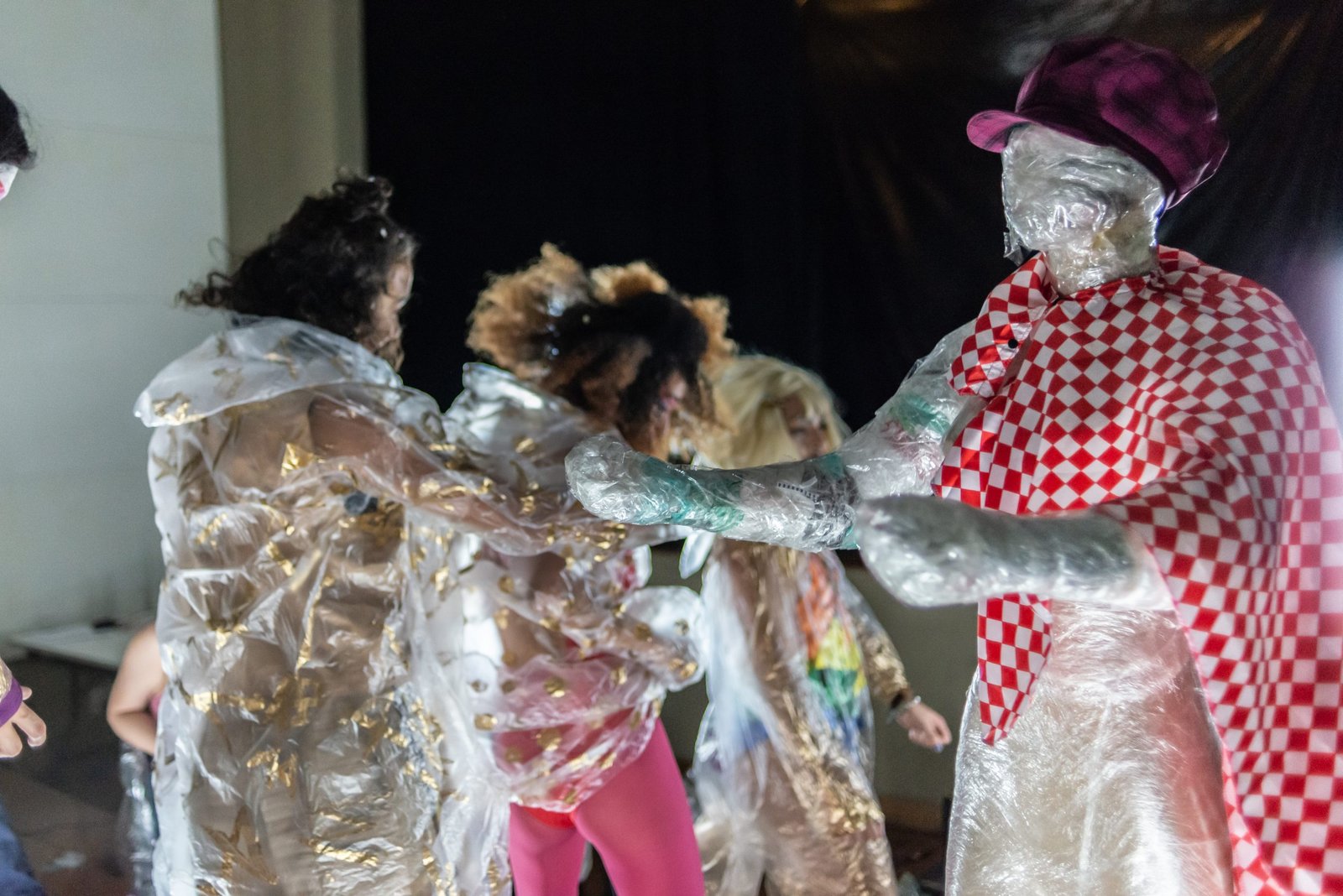 “Nas encruzilhadas da cidade, uma pilha de sacos de lixo entre a pizzaria e o metrô é o ponto de encontro de tensões e distensões entre um dono de pizzaria cidadão de bem; uma criança em situação de rua; uma artista em situação de rua que recicla para criar e viver; e um coletor de lixo. É a disputa do território; a assistência e controle social da rua; a fome e a inocência humanas; a arte como forma de sobrevivência se parindo resistência política em tempos de guerra. Sacos de lixo que afetam e são afetados, modificam-se diante dos conflitos existentes para conversar: há espaço para a mudança sentar conosco no tempo presente? ”