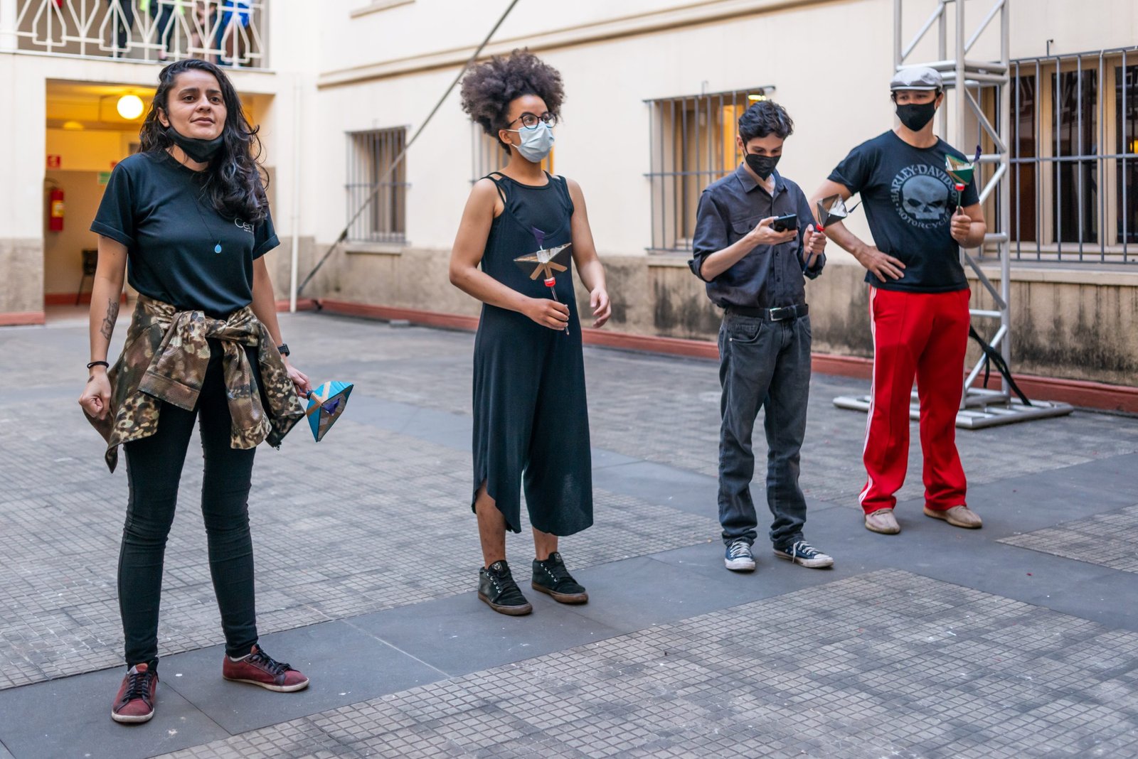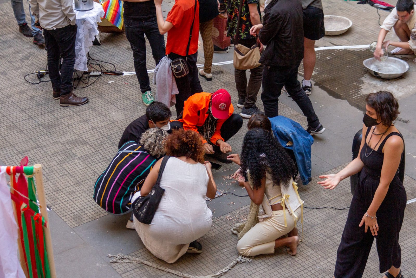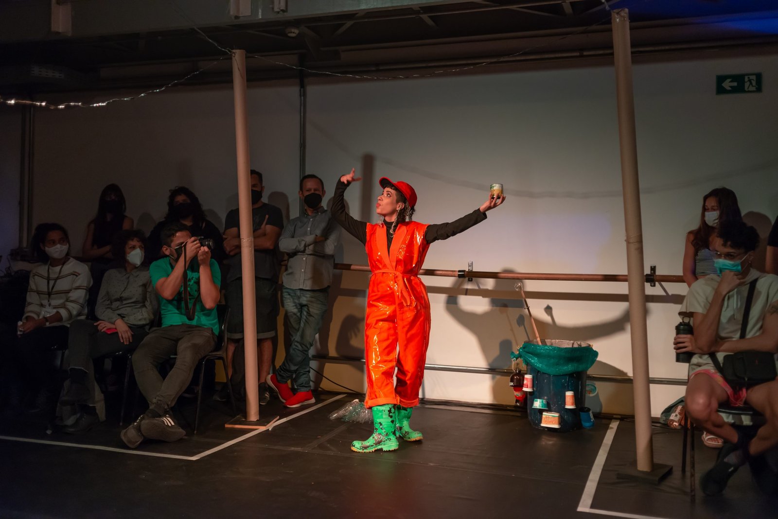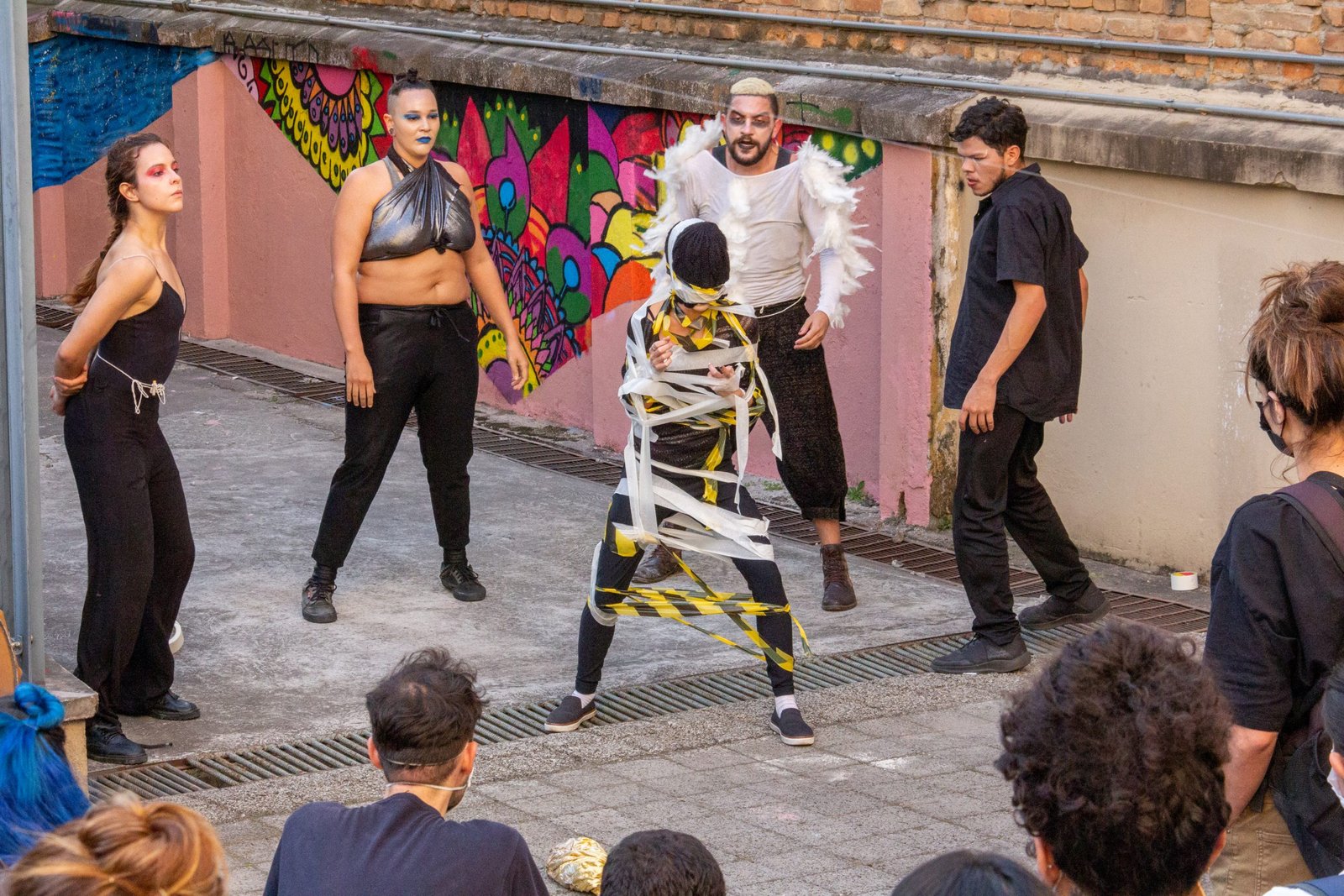 As poéticas de rua, material de estudo do primeiro semestre de 2022 no curso técnico da SP, trabalham questões relacionadas ao artista urbano e o seu lugar de ocupação/uso, que é a cidade. O assunto foi constantemente debatido e fundamentou as discussões desses últimos seis meses ao oferecer um rico material pedagógico e social que, explorado pelos estudantes, serviu de base para a construção das apresentações. Em geral, os objetos de pesquisa investigados foram as vivências e produções artísticas de artistas como Efigênia Rolim, Helio Leites, Zé Bolo Flô, Berna Reale e Leonardo Scantbelruy, sendo a performatividade o foco para o Módulo Azul e a relação personagem/conflito para o Verde.