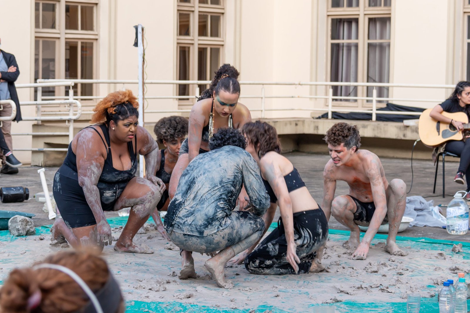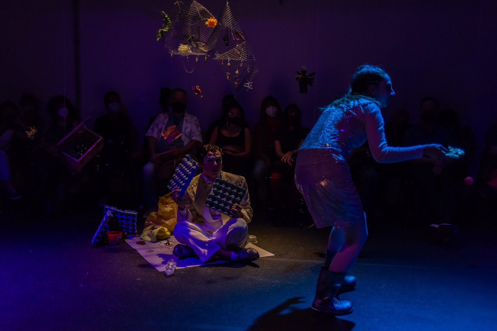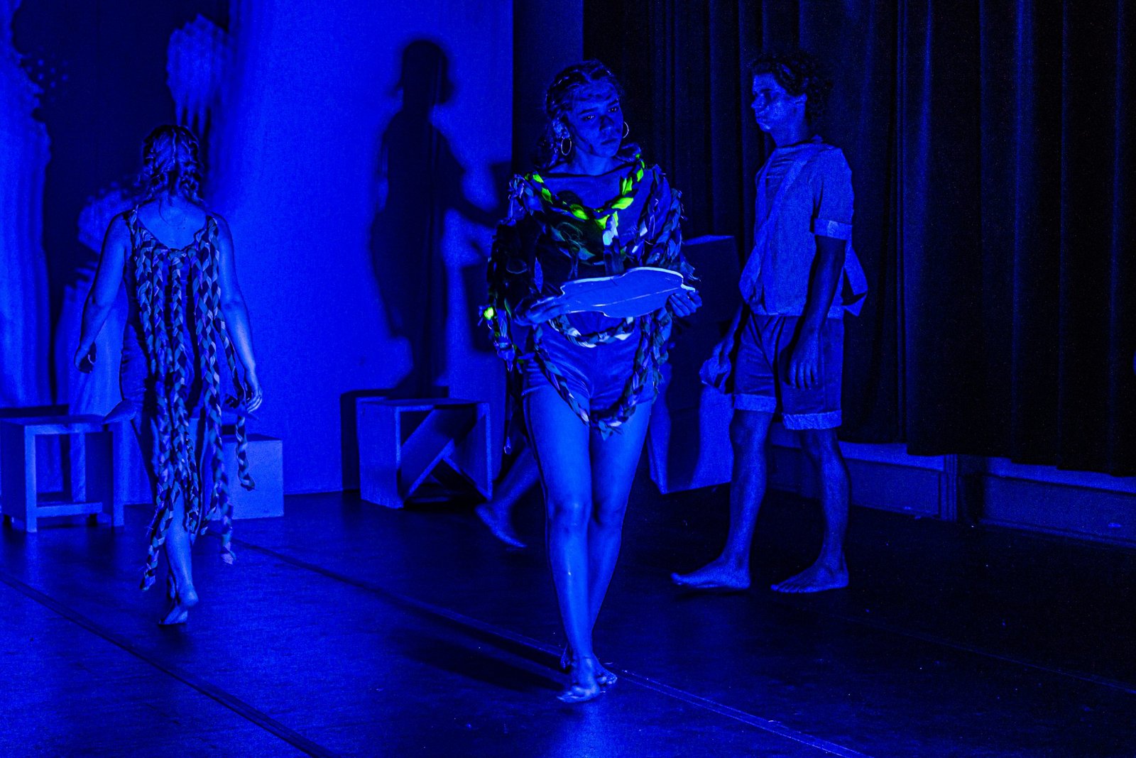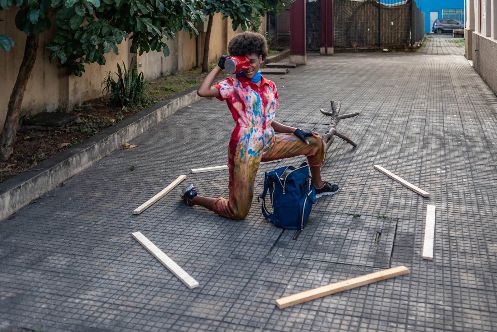 As poéticas de rua, material de estudo do primeiro semestre de 2022 no curso técnico da SP, trabalham questões relacionadas ao artista urbano e o seu lugar de ocupação/uso, que é a cidade. O assunto foi constantemente debatido e fundamentou as discussões desses últimos seis meses ao oferecer um rico material pedagógico e social que, explorado pelos estudantes, serviu de base para a construção das apresentações. Em geral, os objetos de pesquisa investigados foram as vivências e produções artísticas de artistas como Efigênia Rolim, Helio Leites, Zé Bolo Flô, Berna Reale e Leonardo Scantbelruy, sendo a performatividade o foco para o Módulo Azul e a relação personagem/conflito para o Verde.