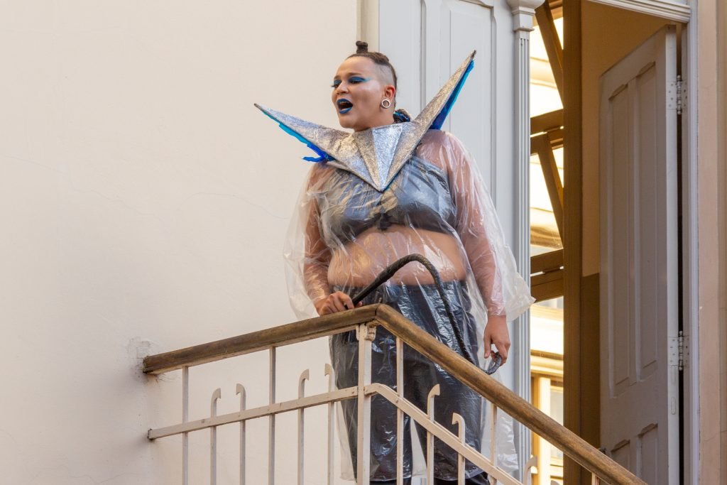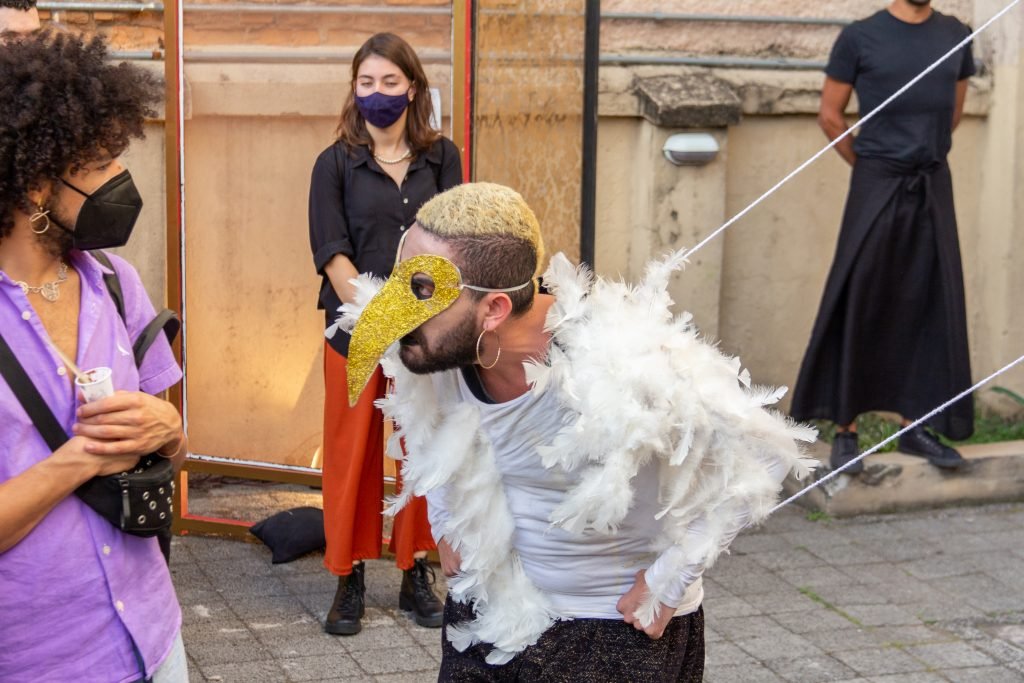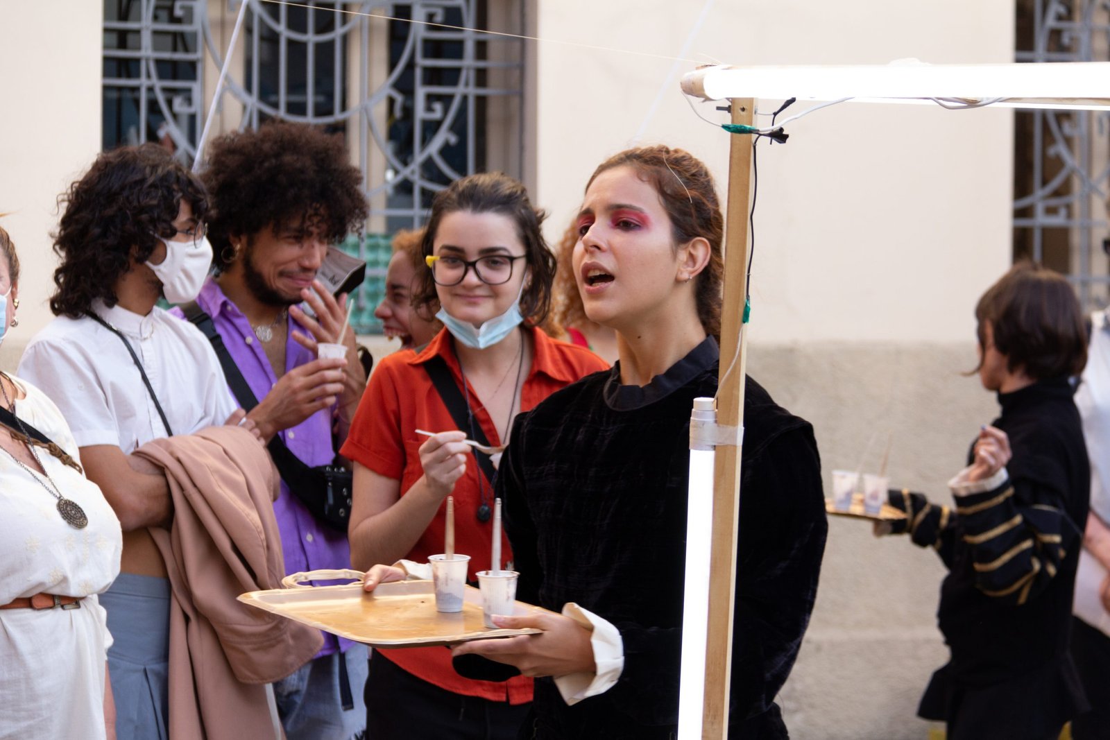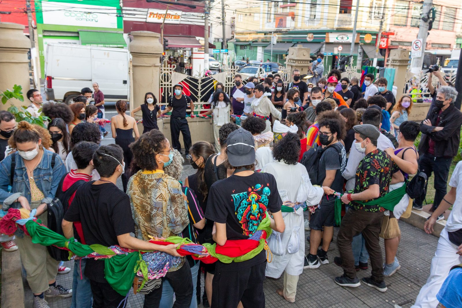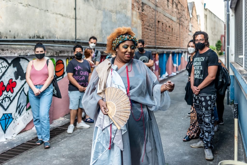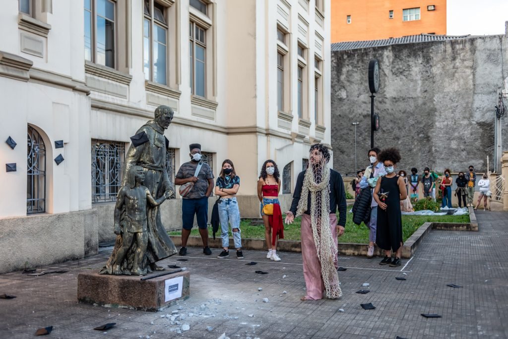 “Um museu ao ar livre no qual o teatro performativo desconstrói a imagem fria e institucionalizada que torna espaços culturais, por vezes, ambientes excludentes. O tema e as ações do MUSEU AO LÉU ABERTO foram elaborados a partir de derivas, entrevistas e observações feitas nas ruas do Brás.”