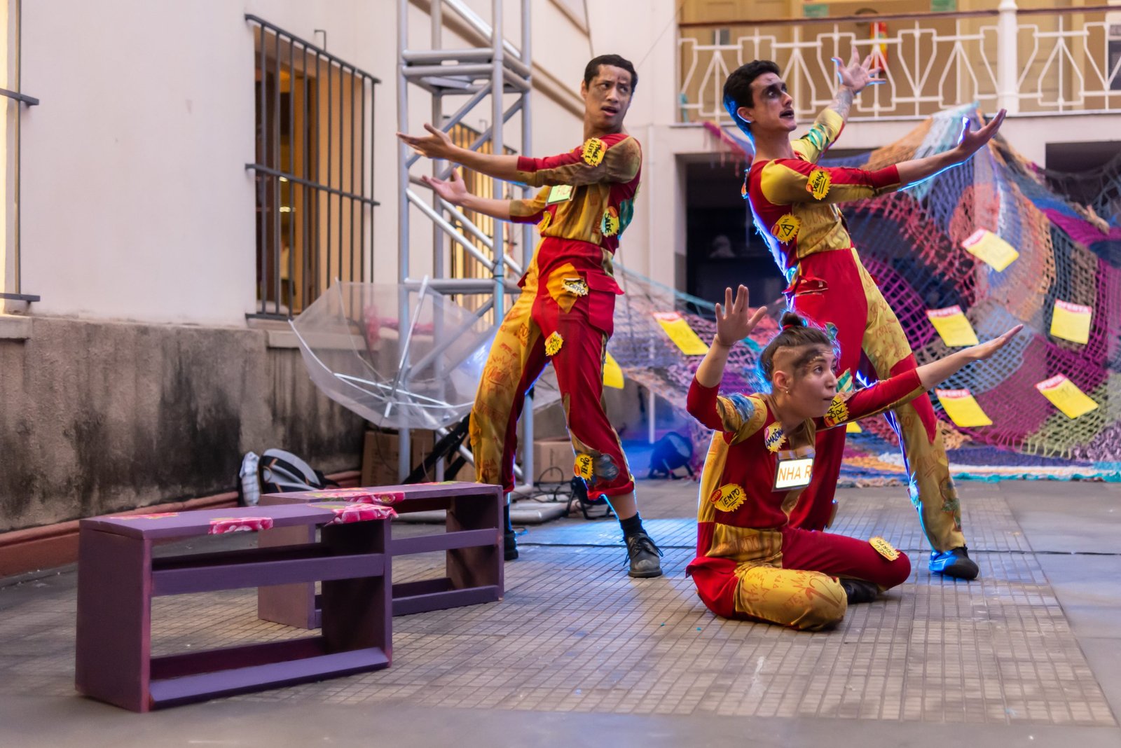 No total, foram 16 montagens produzidas e encenadas presencialmente, confira abaixo algumas fotos de como foram os experimentos: