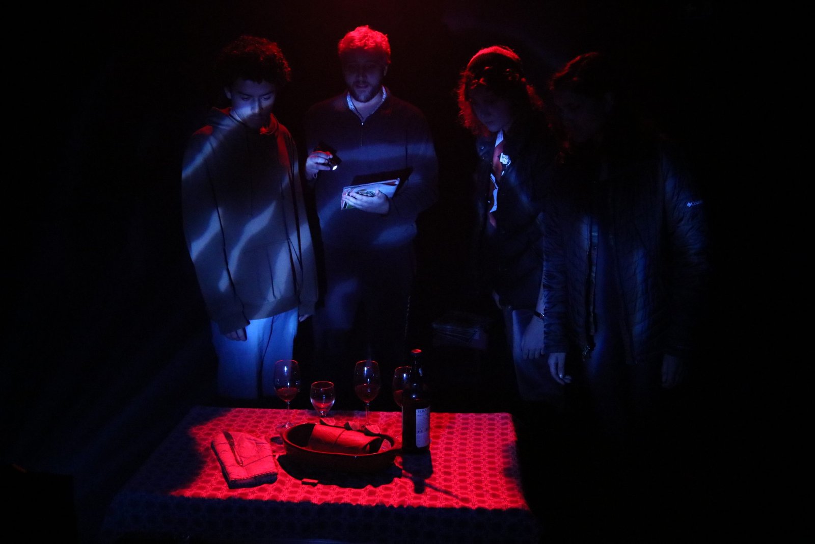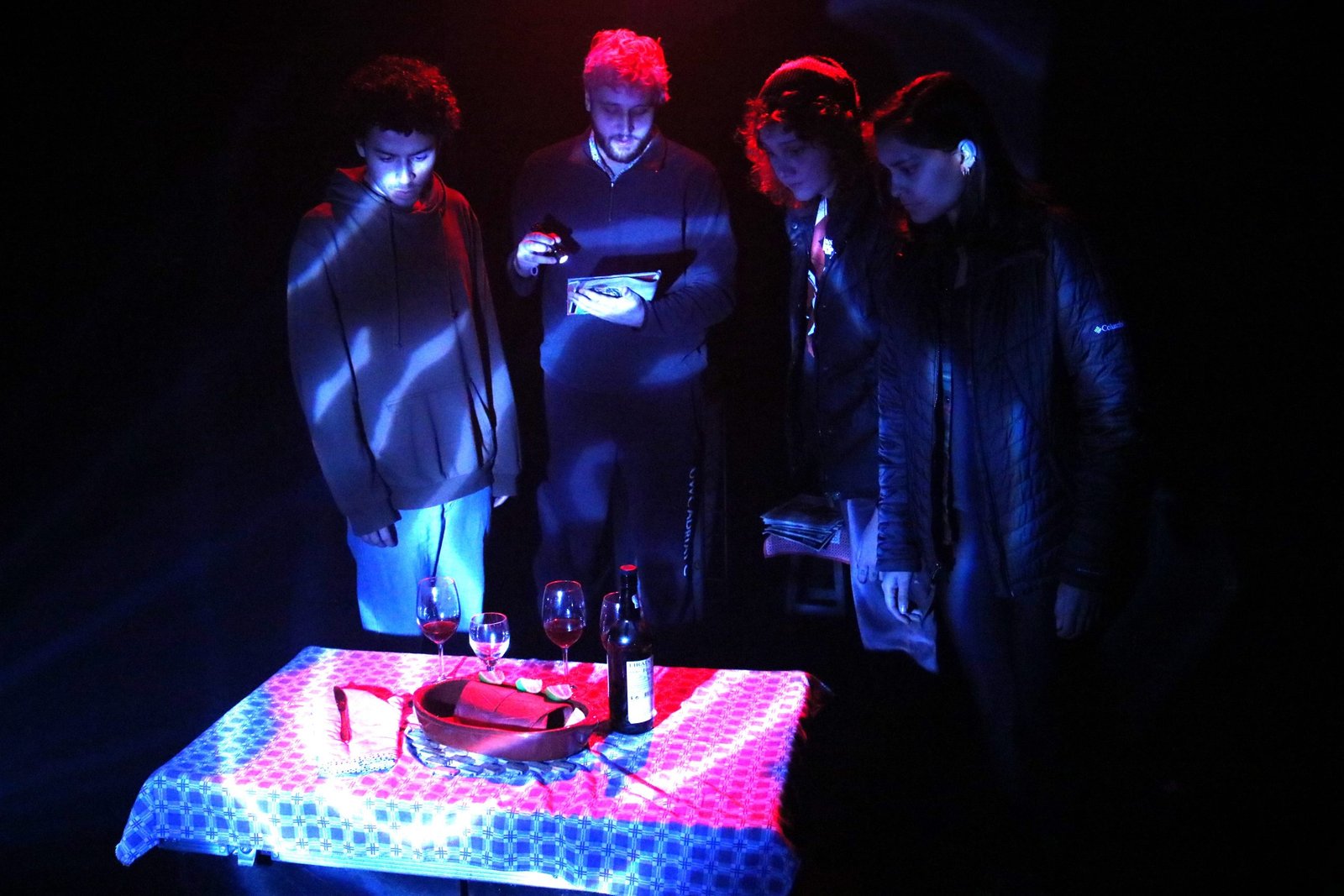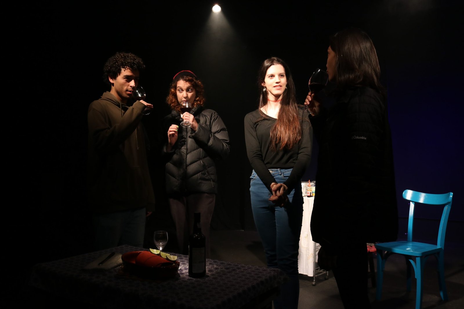 Os estudantes fizeram uma releitura do texto inglês, pois no Brasil a peça já cumpriu temporada em 2010-2011. O autor traz em sua dramaturgia a narrativa de um grupo de amigos artistas que dividem um sentimento ambíguo de inveja, ódio, vergonha e submissão ao acompanharem a amiga artista plástica, que teve sucesso financeiro com suas produções, entrar em coma depois de cair em uma piscina sem água numa nostálgica noite de jantar do grupo.