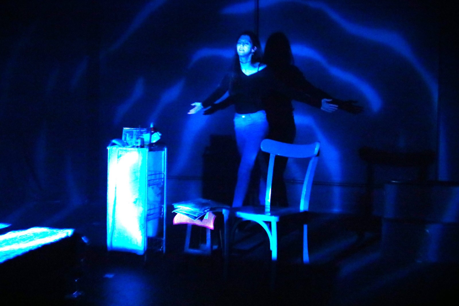 Na última quinta-feira, 3, Nino Brasileiro, estudante de iluminação da SP Escola de Teatro, apresentou o desenho de luz de sua autoria durante um ensaio aberto do texto Piscina (Sem Água), que foi pensado e escrito pelo inglês Mark Ravenhil, junto a outros companheiros de curso. A exibição fez parte do processo de aprendizagem proposto pelo curso, coordenado por Guilherme Bonfanti.