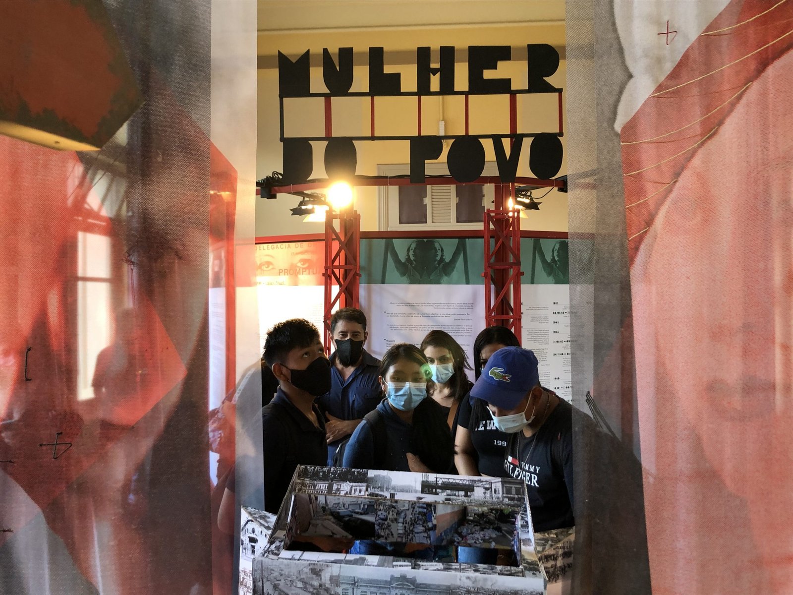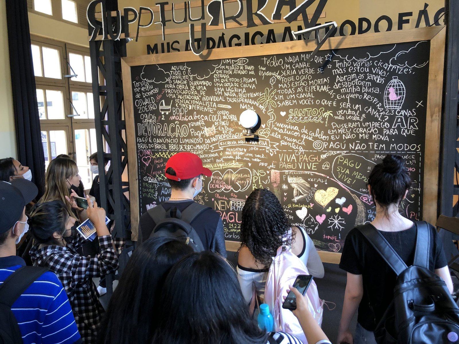 Estudantes da E. E. Padre Anchieta durante a visitação da exposição Universo Pagu, em cartaz na unidade Brás da SP Escola de Teatro. Foto: Comunicação SP Escola de Teatro
