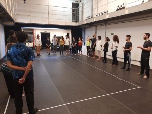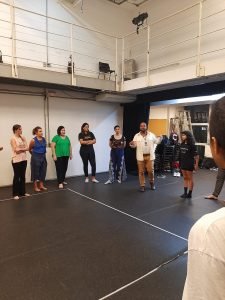 O curso de Práticas para Atuação, oferecido pela Extensão Cultural da SP Escola de Teatro, iniciou seus encontros no começo do mês de março, na sede Roosevelt da instituição de ensino. O coordenador da Extensão Cultural e Projetos Especiais, Miguel Arcanjo, marcou presença no primeiro dia recepcionando os estudantes e os professores.