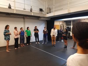 Miguel Arcanjo recebe os estudantes do curso Práticas para Atuação, promovido pela Extensão Cultural | Foto: SP Escola de Teatro