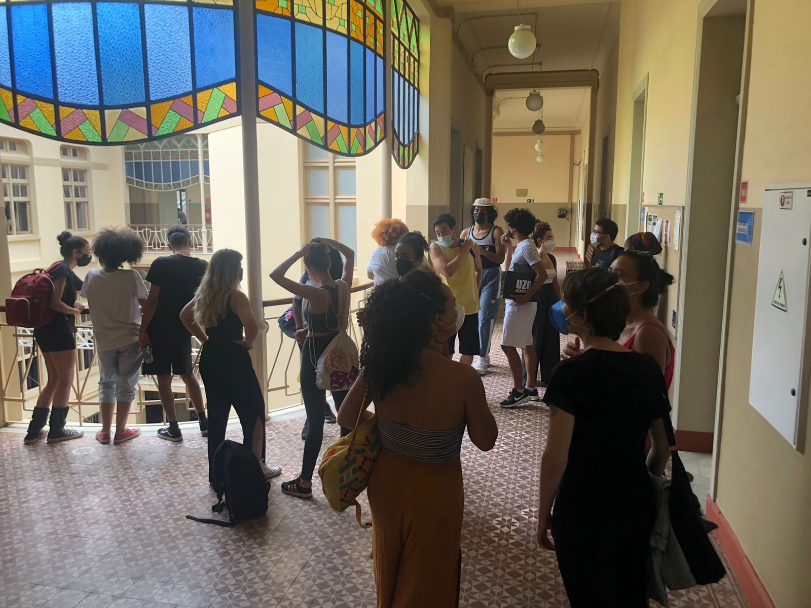 A última segunda-feira, 7, foi um dia muito intenso, alegre e tocante para os estudantes, professores e colaboradores da SP Escola de Teatro! Os corredores e as salas das sedes Roosevelt e Brás estavam cheios pela primeira vez em muito tempo, isso porque o curso técnico em teatro retomou as aulas presenciais com 100% dos estudantes após 2 anos de atividades digitais ou com limitação de pessoas!