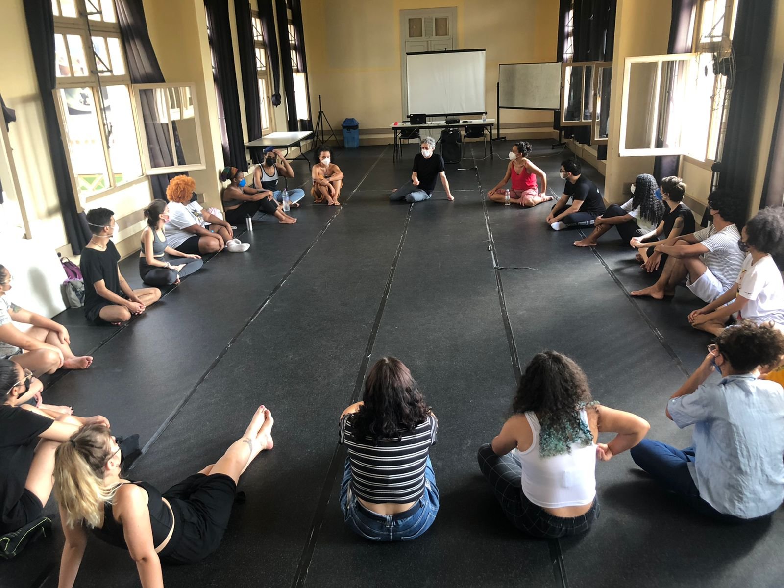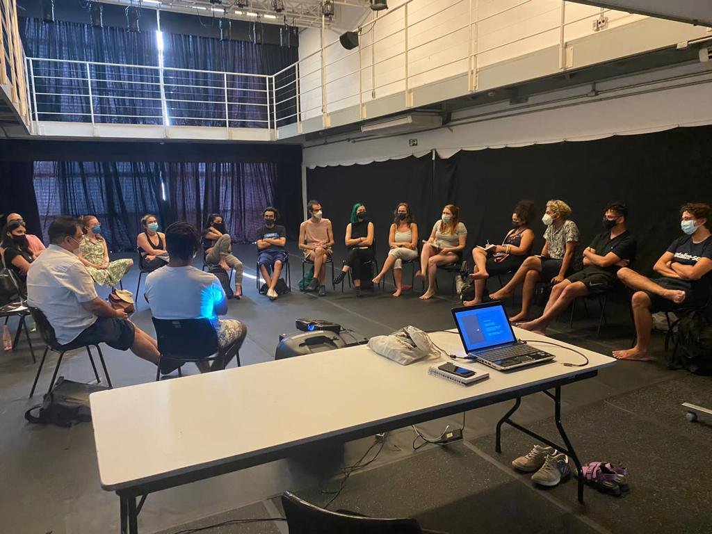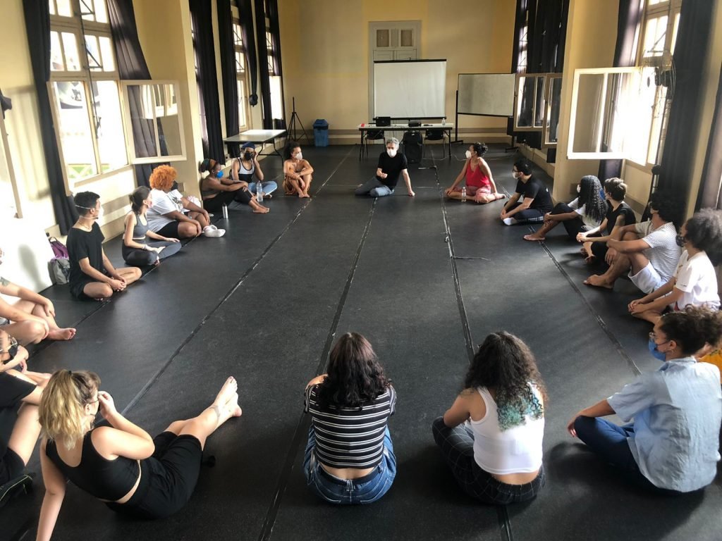 Aula de atuação na sede Brás com o coordenador Hugo Possolo/ Foto: Bruno Galvincio