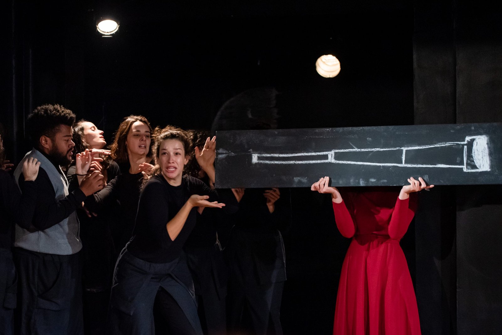 Texto: Bertolt Brecht | Tradução: Roberto Schwarz | Direção René Piazentin | Elenco: Anita Prades, Bruna Alves, Camila Fávero, Duda Paiva, Giovana Telles, Ingrid Taveira, Jackson Gleizer, Júnior Moreira Bordalo, Lilian Alves, Malu Paixão, Mariana Nolla, Victória Pozzan, Vitor Julian | Assistência de Direção: Aline Baba, Caroline do Amaral e Raíza Carvalho | Figurinos: Aline Baba | Costureira: Márcia Sueli Rosa | Luz: Ariel Rodrigues | Projeto visual: Anita Prades | Operação de som: Raíza Carvalho.